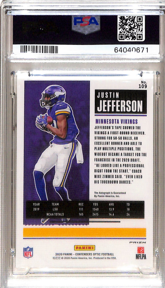 Justin Jefferson 2020 Contenders Optic Silver Auto Rookie PSA 9 Mint