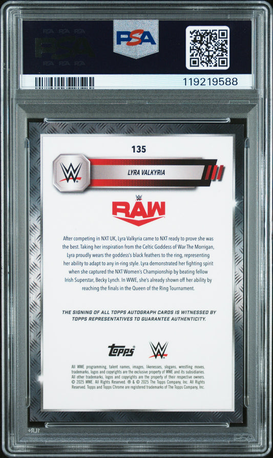 Lyra Valkyria 2025 Topps Chrome WWE Gold Refractor Auto #42/50 PSA 9 Auto 10