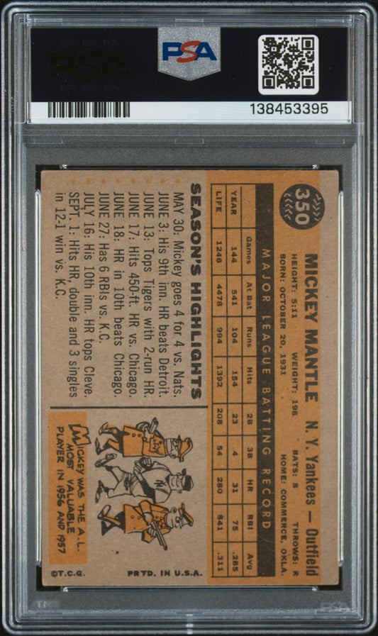 Mickey Mantle 1960 Topps #350 PSA 4 VG-EX 3395