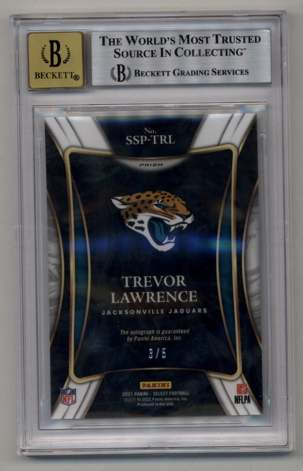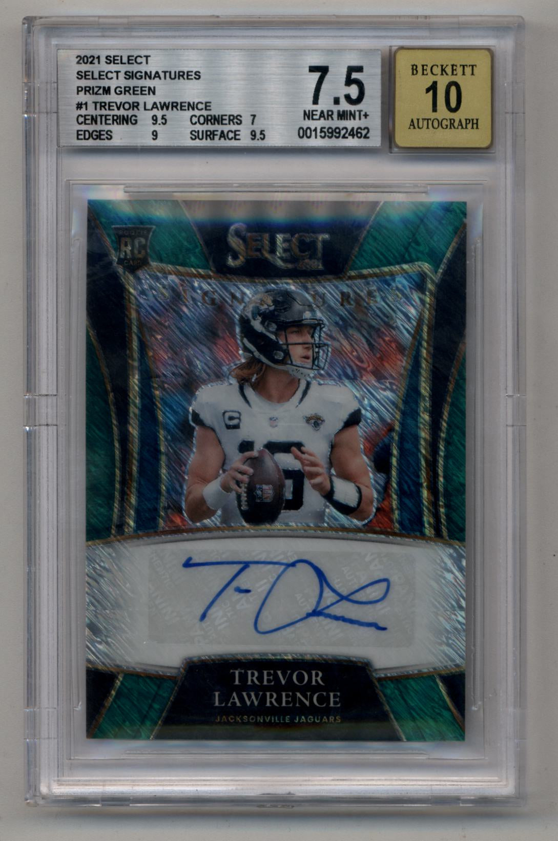 Trevor Lawrence 2021 Select Signatures Prizm Green 3/5 BGS 7.5 Near Mint+ Auto 10