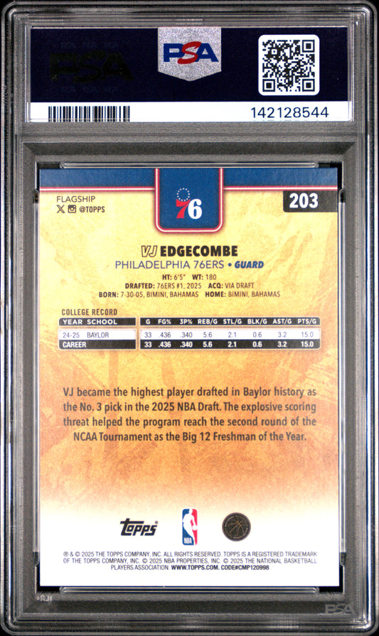 VJ Edgecombe 2025 Topps Rookie #203 Golden Mirror PSA 9 Mint