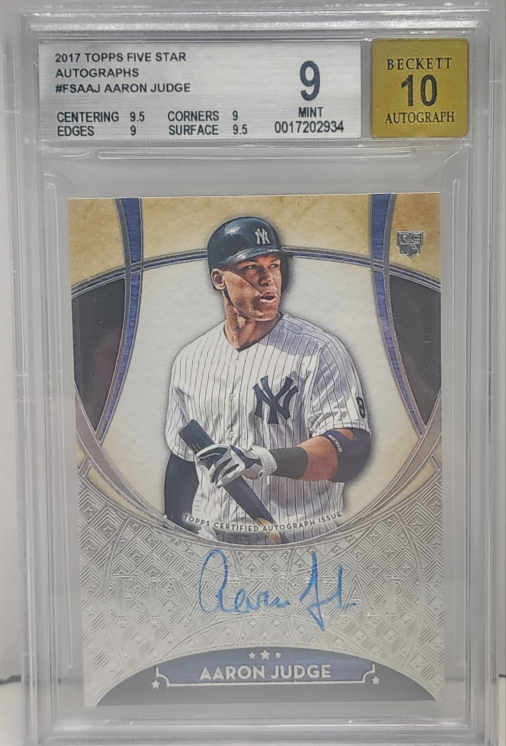 Aaron Judge 2017 Topps Five Star Rookie Autographs BGS 9 Auto 10 2934