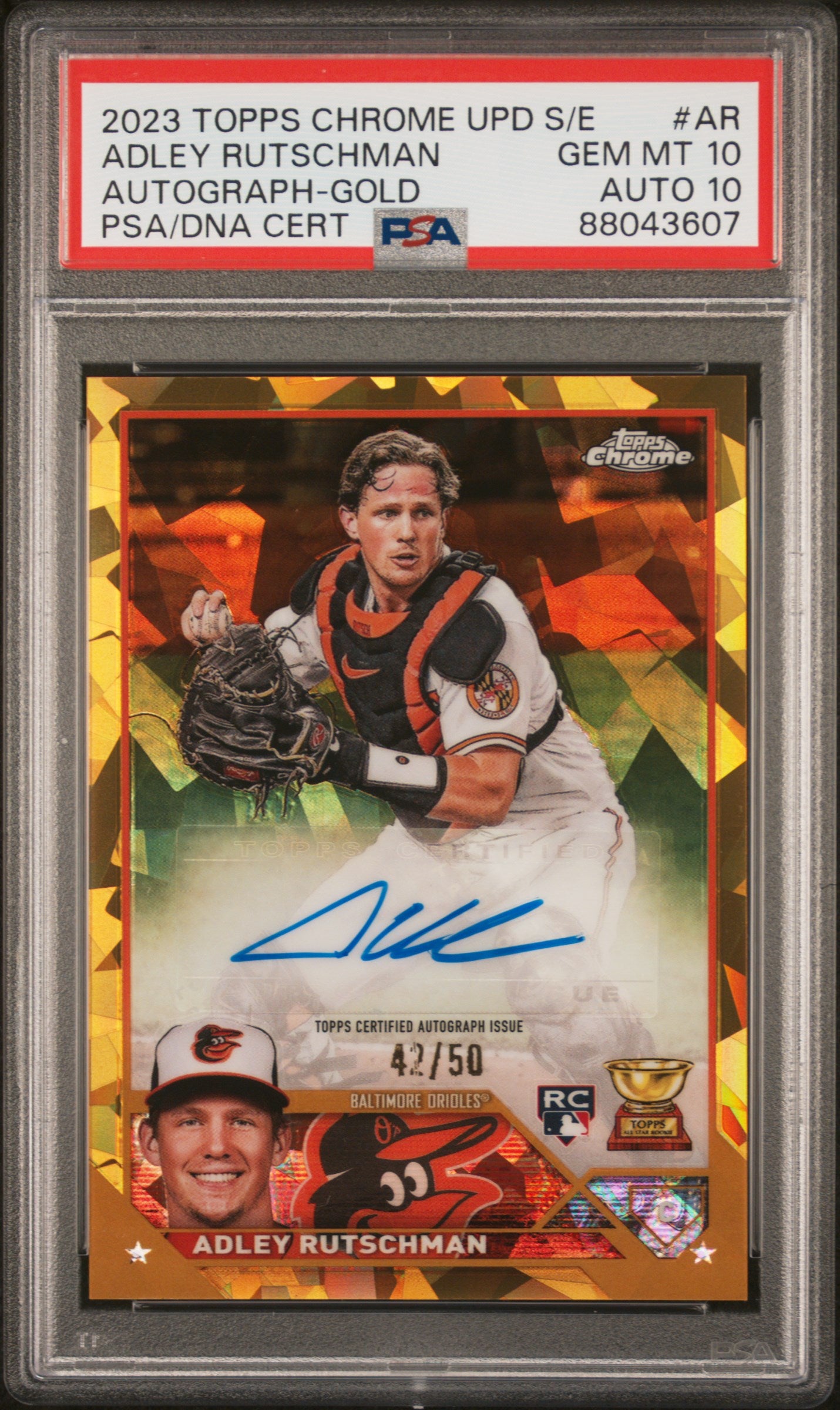 Adley Rutschman 2023 Topps Chrome Update Sapphire Gold Refractor Auto #42/50 PSA 10 Auto 10
