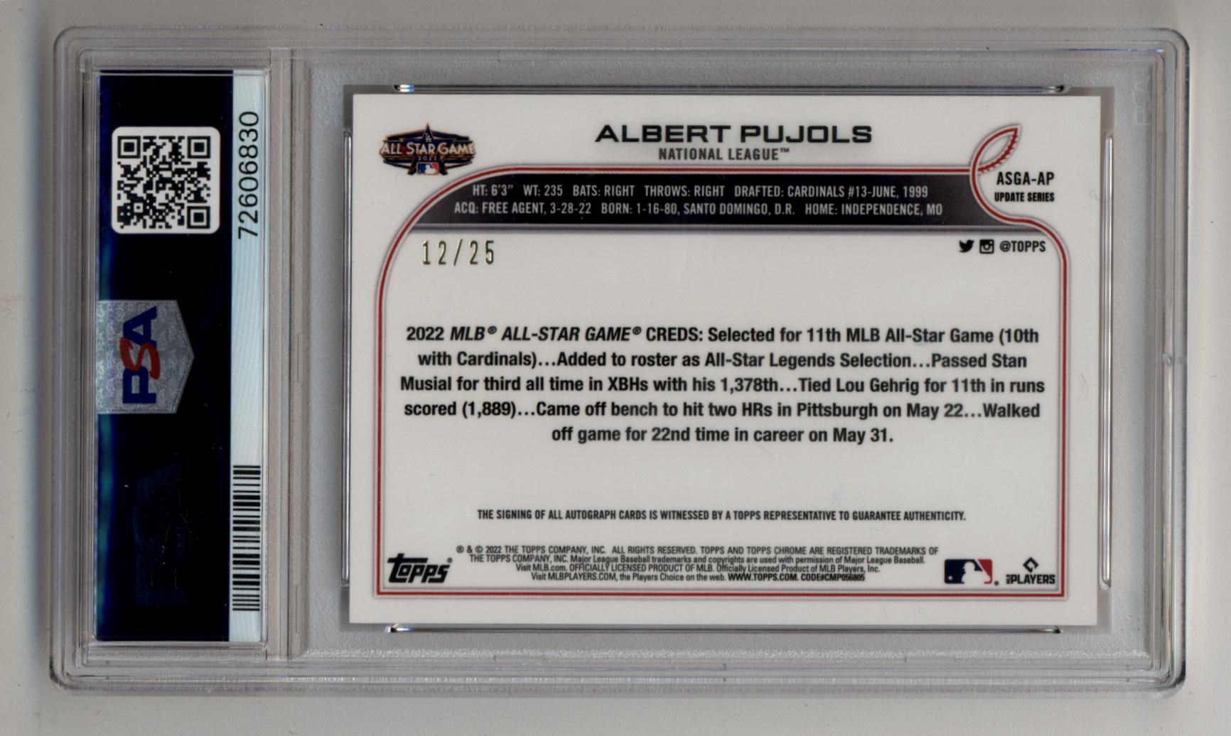 Albert Pujols 2022 Topps Chrome Update '22 All Star Game Auto Orange Refractor 12/25 PSA 10 Gem Mint