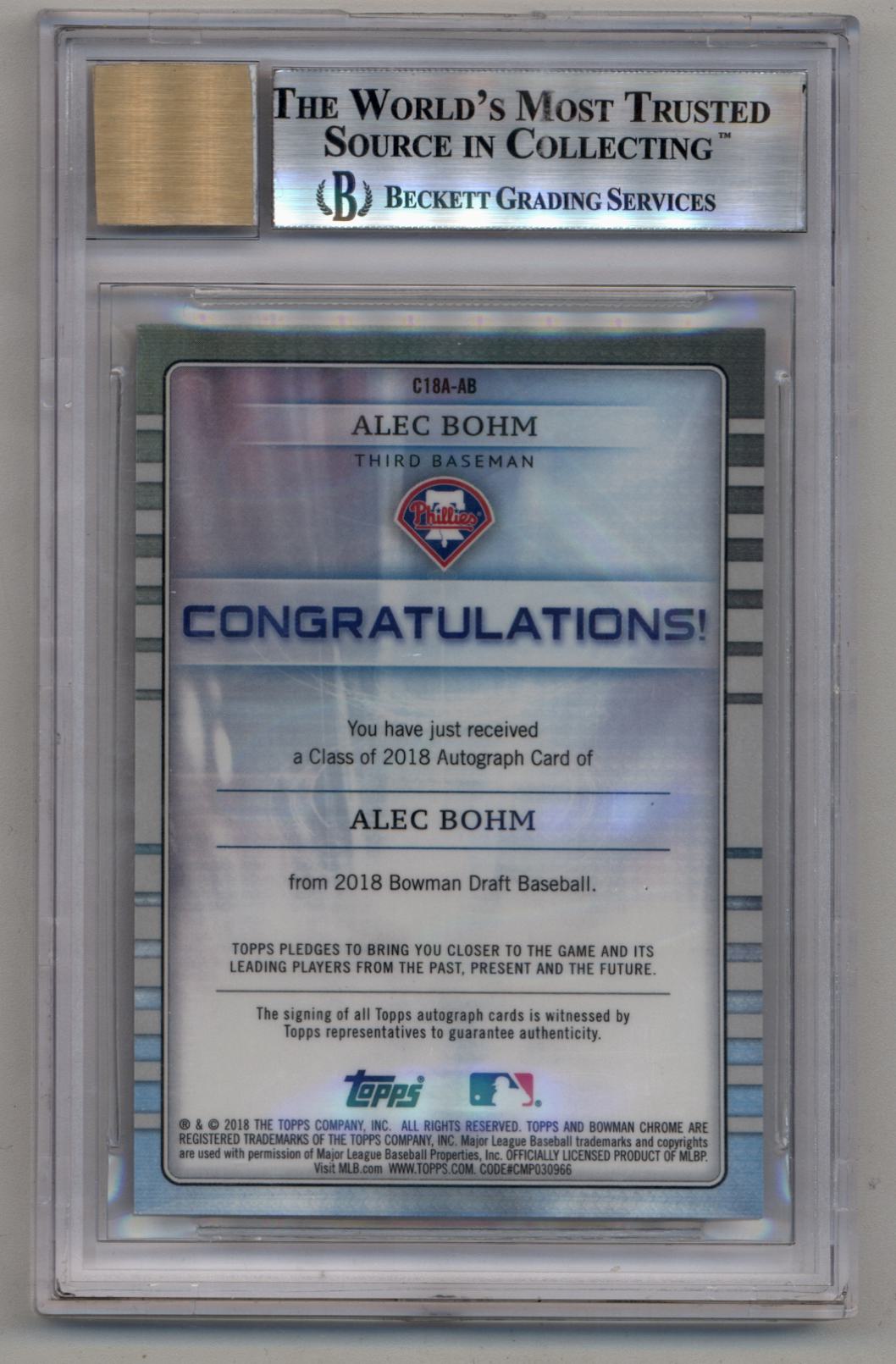 Alec Bohm 2018 Bowman Chrome Draft Picks Class of '18 Gold Refractor Auto 05/50 BGS 8.5 Near Mint-Mint+ Auto 10