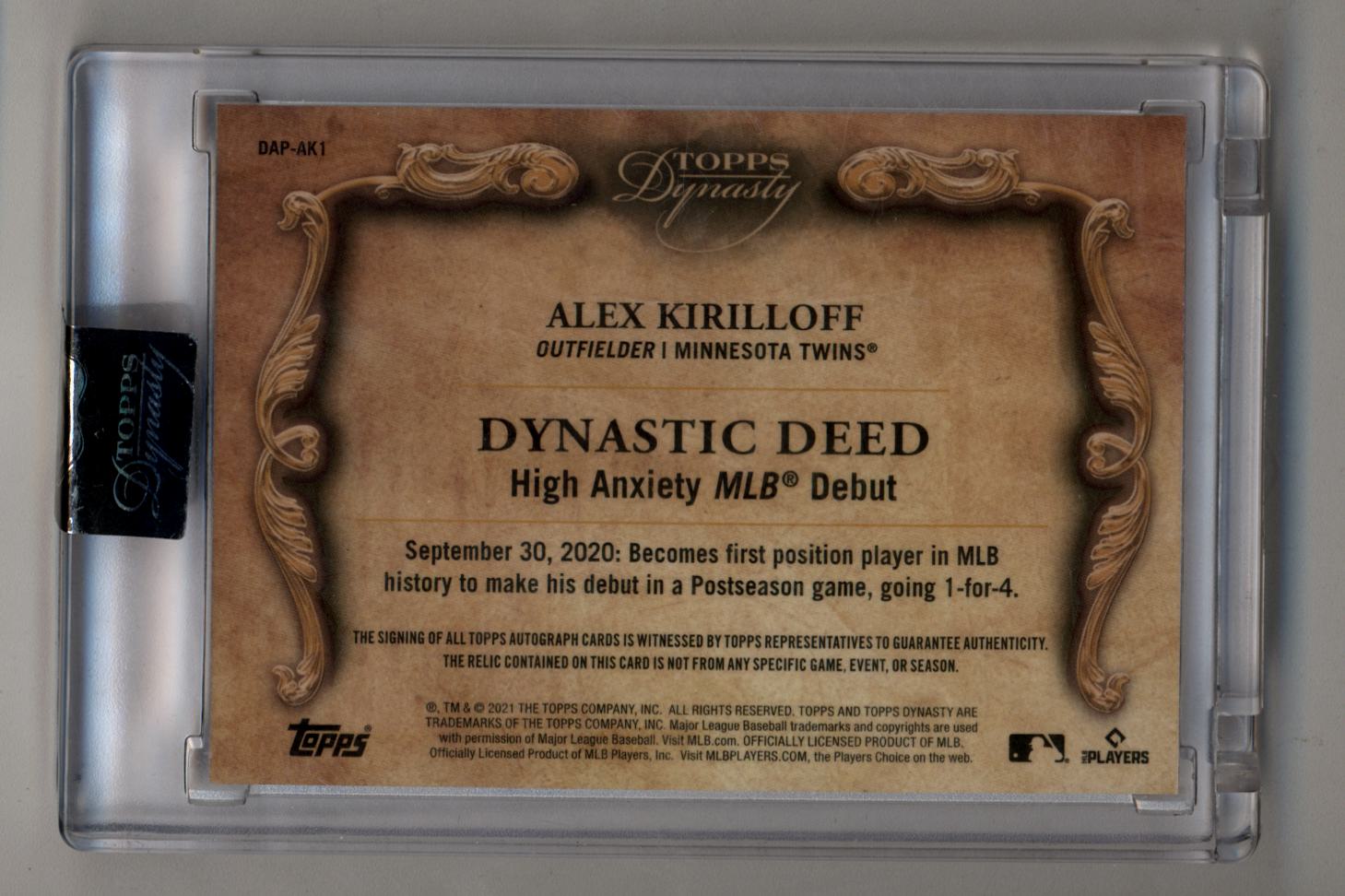 Alex Kirilloff 2021 Topps Dynasty MLB Debut Patch Auto 2/5