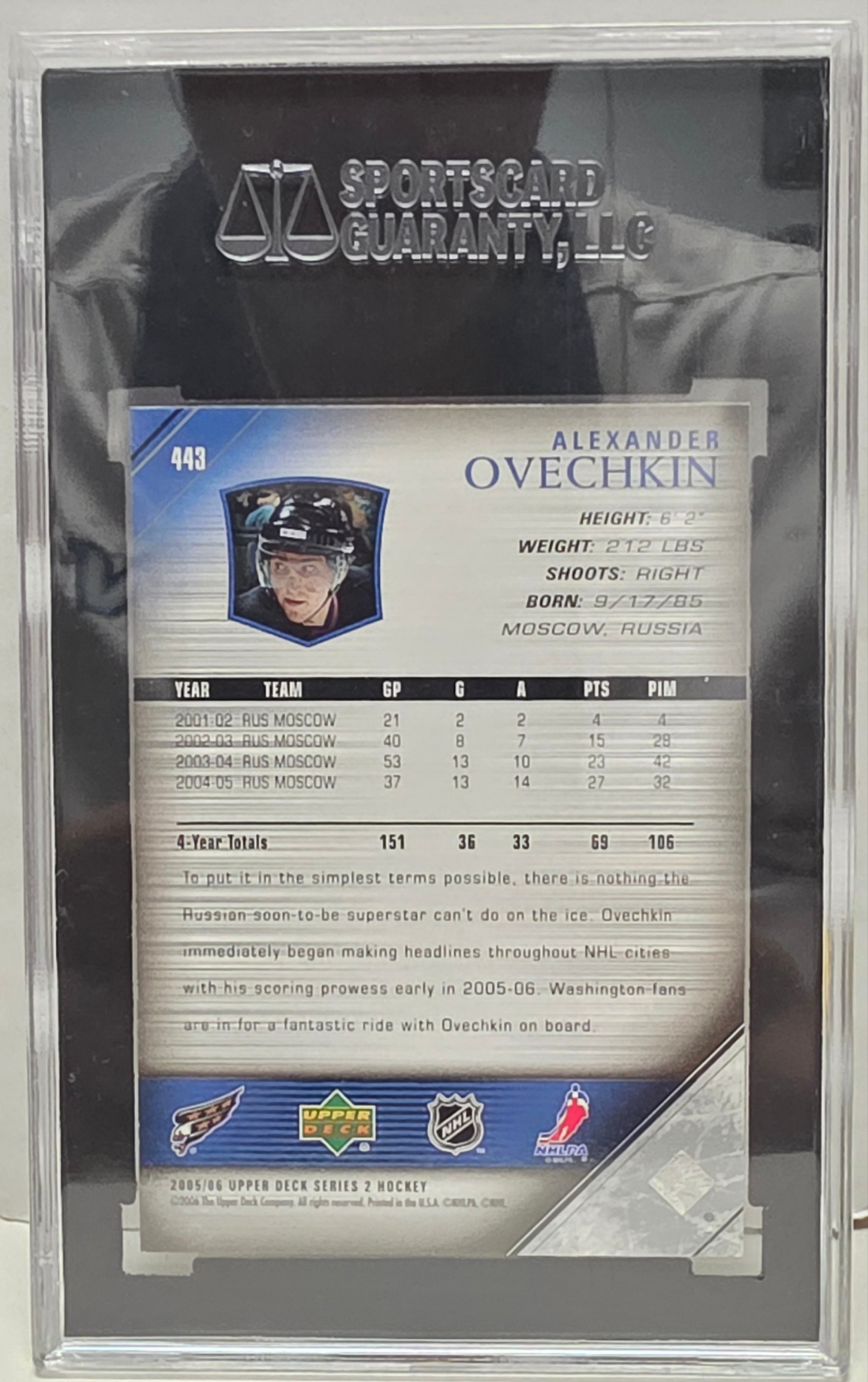 Alex Ovechkin 2005 Upper Deck Young Guns #443 SGC 6 Ex-Mt