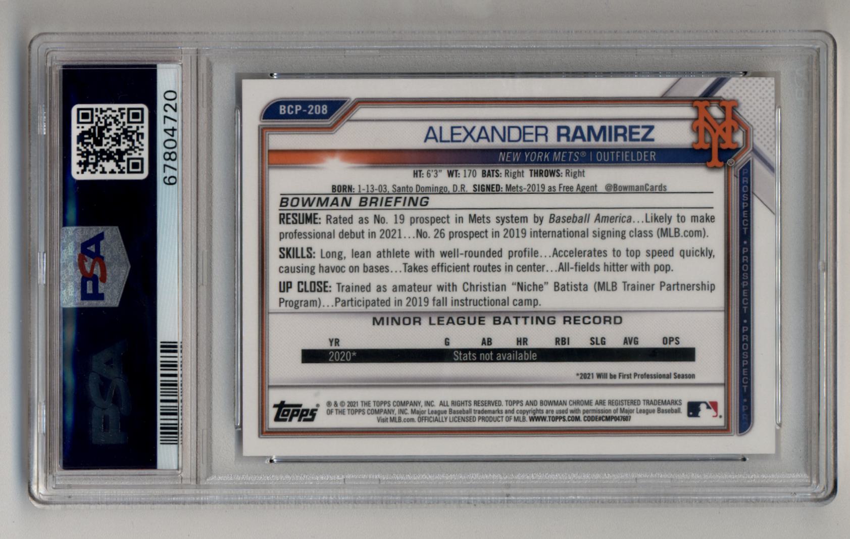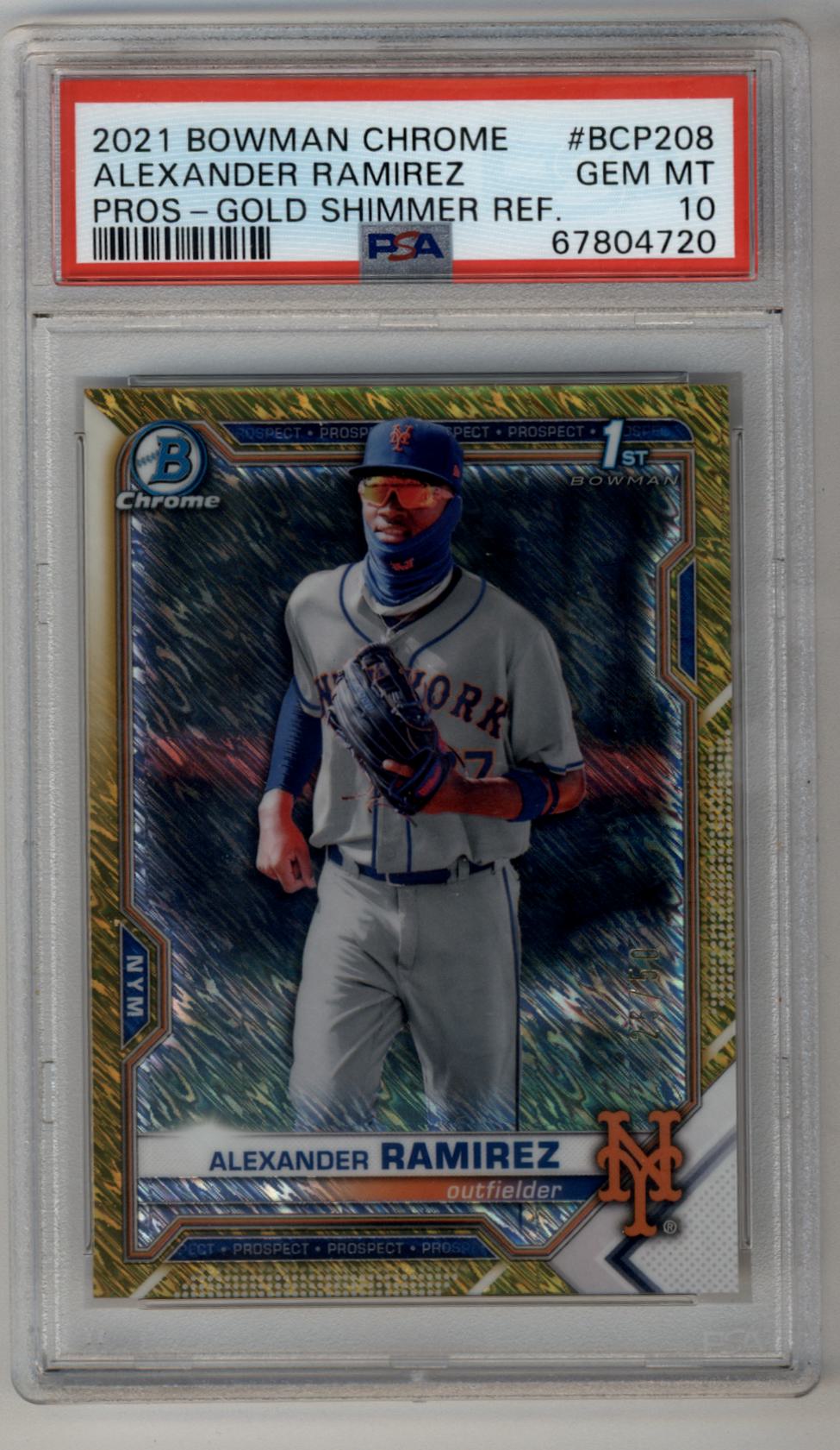 Alexander Ramirez 2021 Bowman Chrome Prospects Gold Shimmer Refractors #BCP208 25/50 PSA 10 Gem Mint