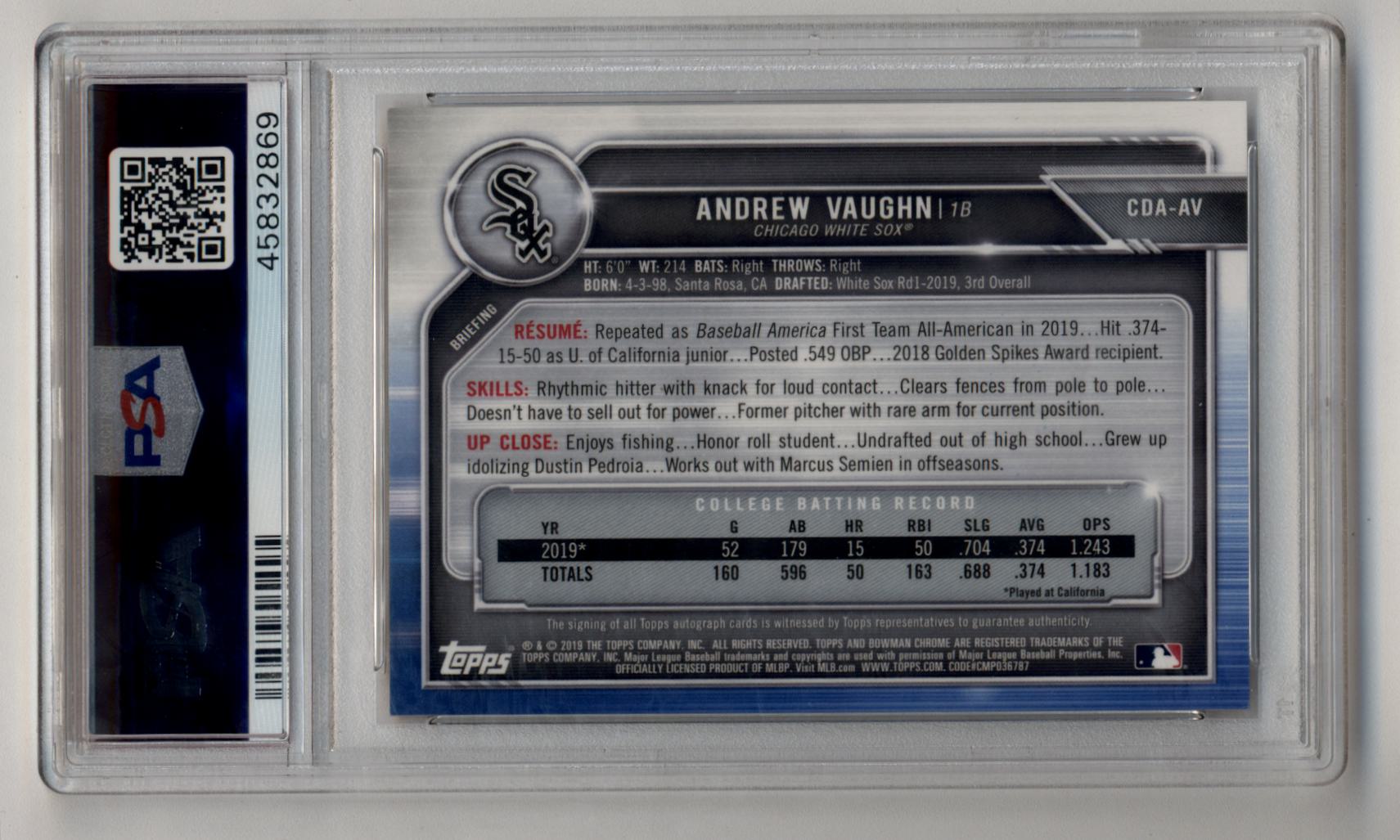 Andrew Vaughn 2019 Bowman Chrome Draft Gold Refractor Auto 30/50 PSA 10 Gem Mint