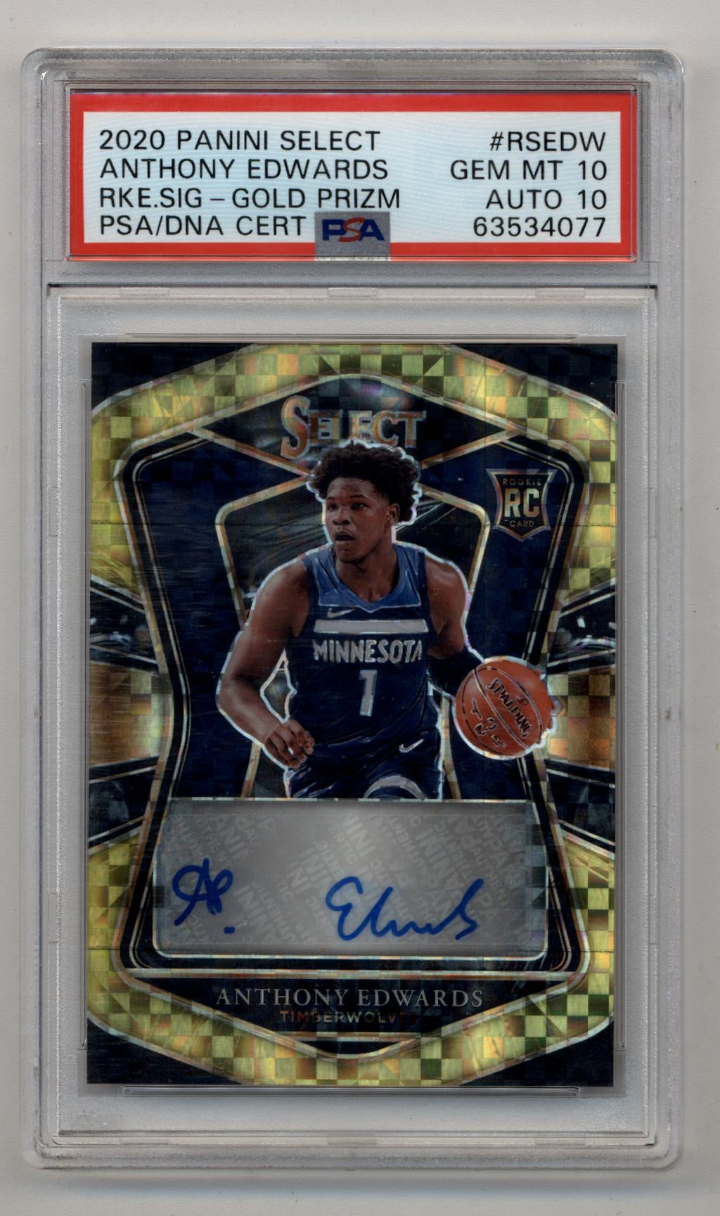 Anthony Edwards 2020-21 Select Rookie Auto Gold Prizm 03/10 PSA 10 Gem Mint