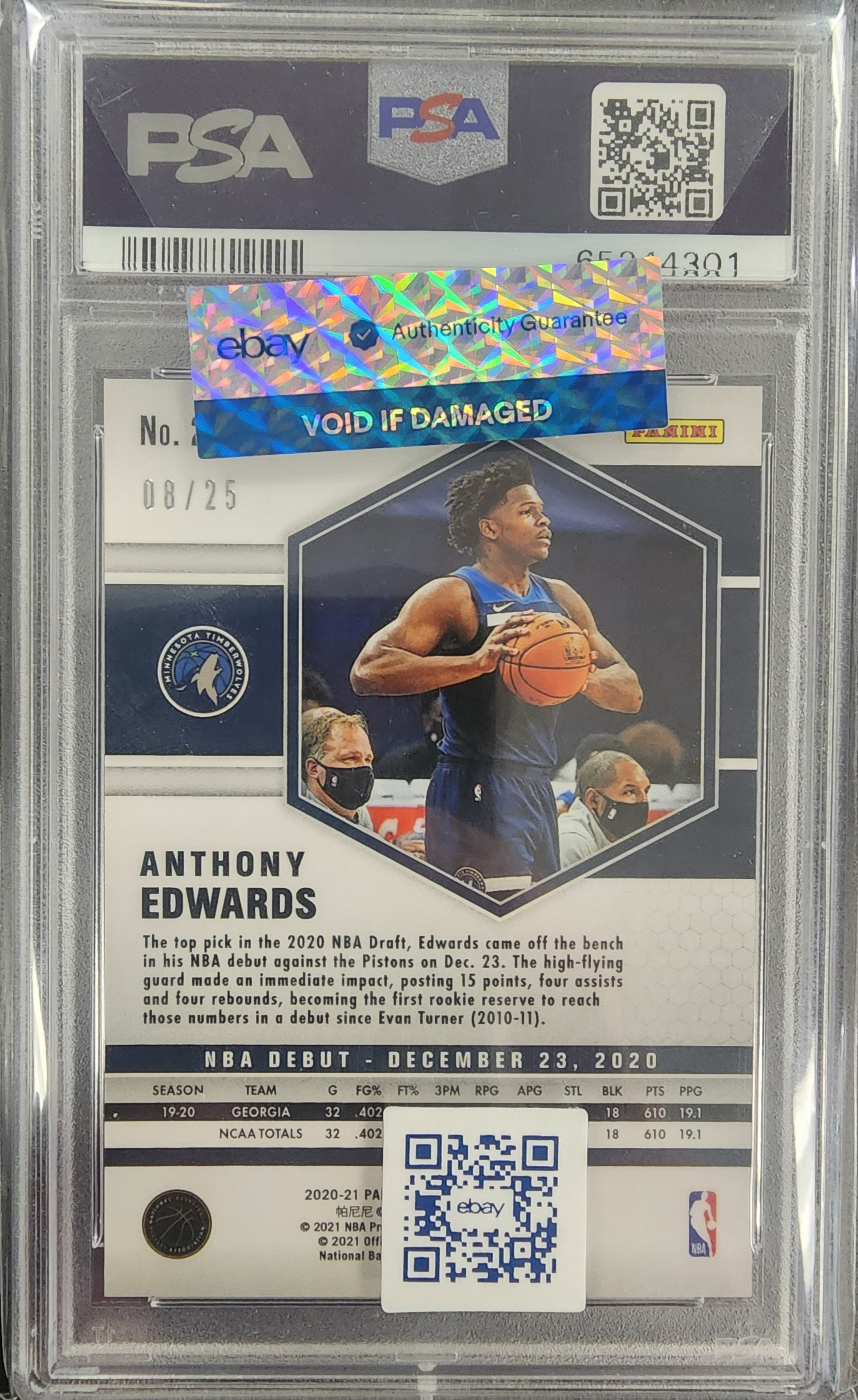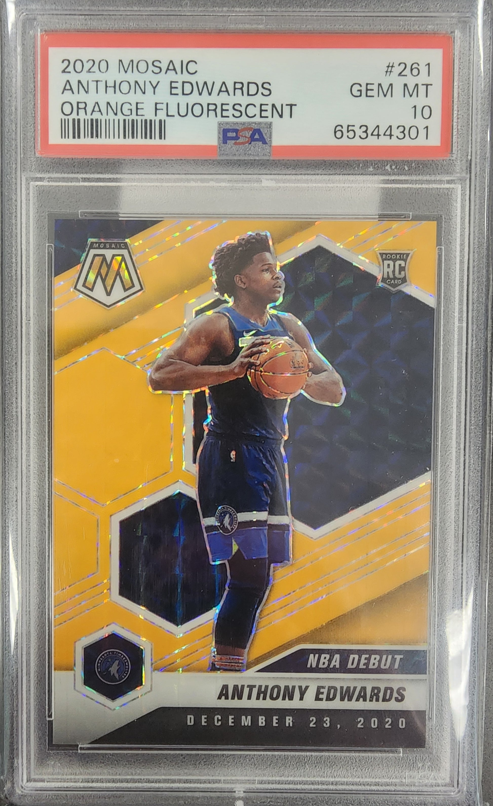 Anthony Edwards 2020 Panini Mosaic #261 Orange Fluorescent #8/25 PSA 10 Gem Mint