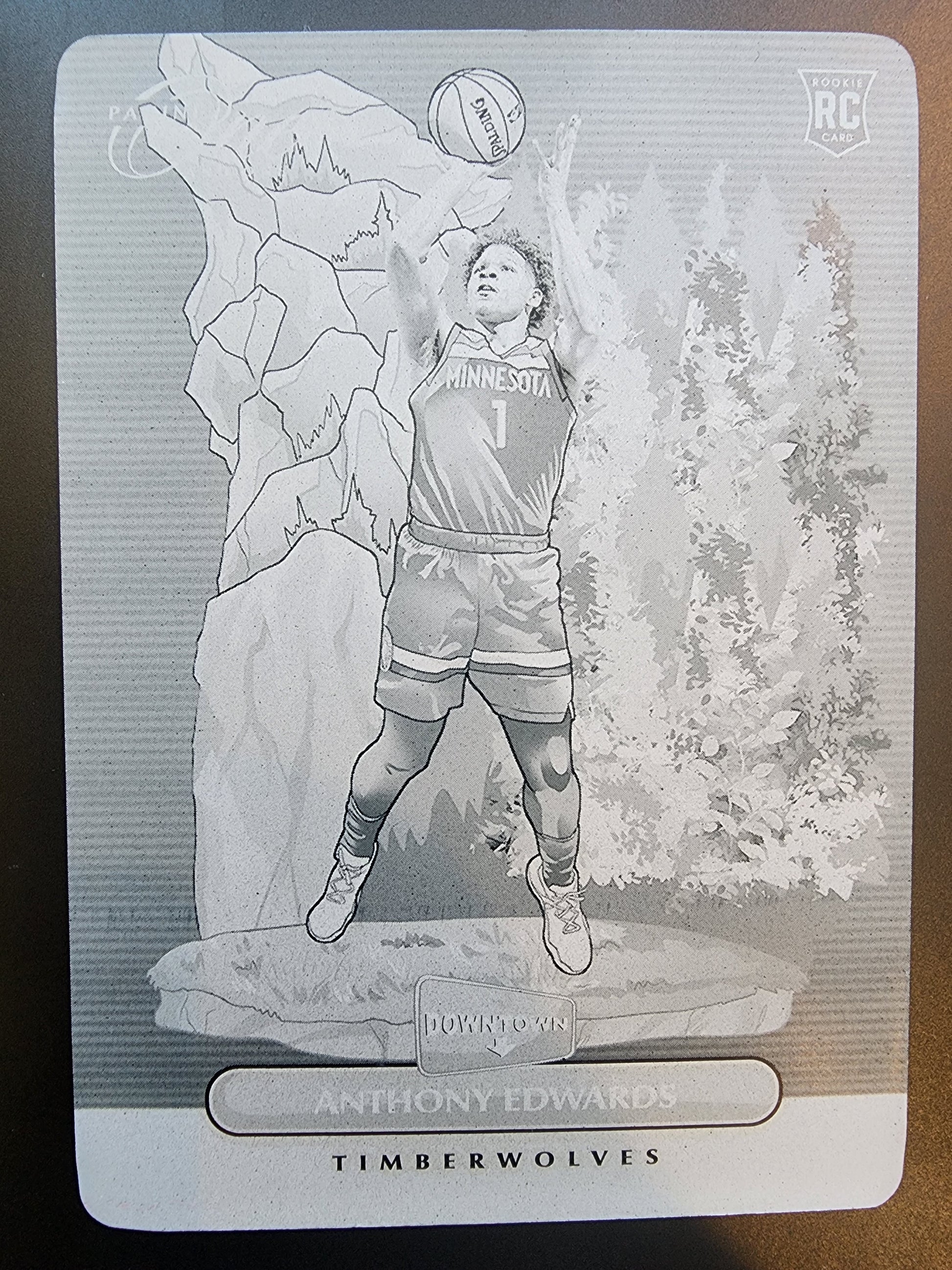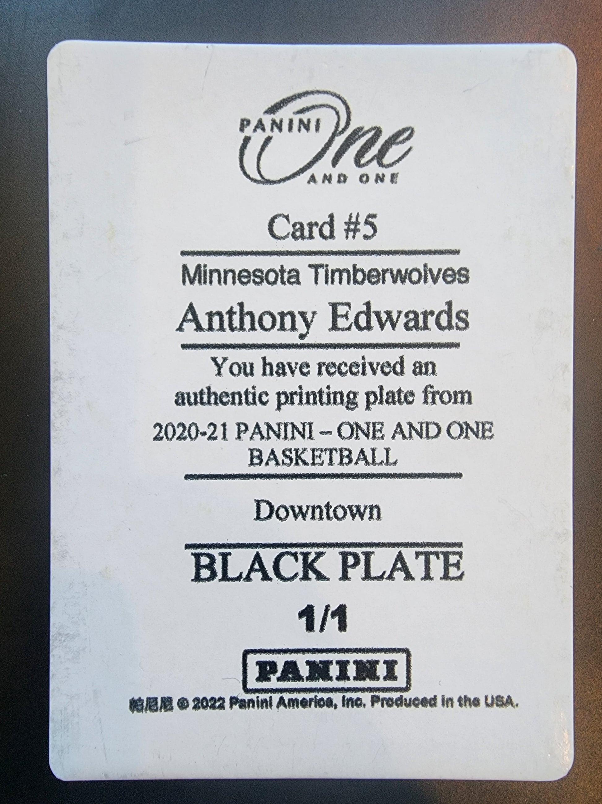 Anthony Edwards 2020 Panini One Downtown Black Plate #1/1