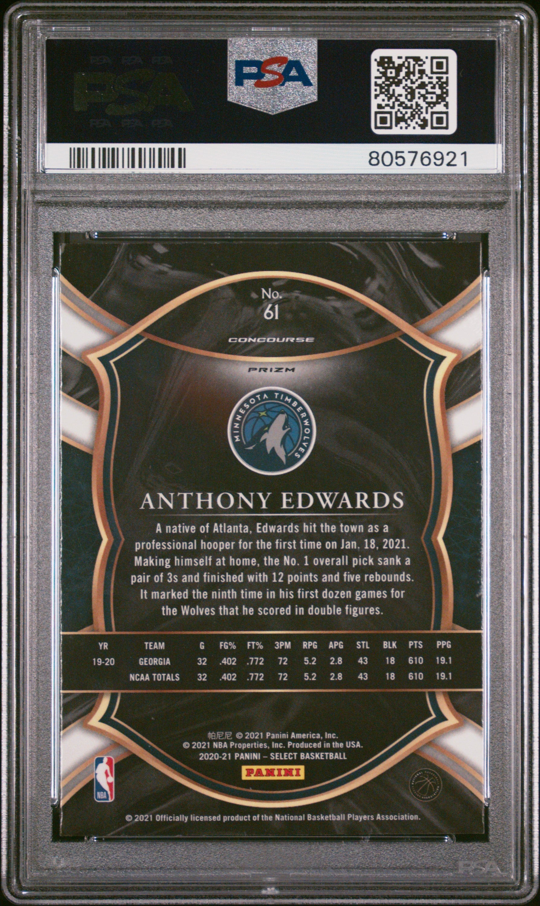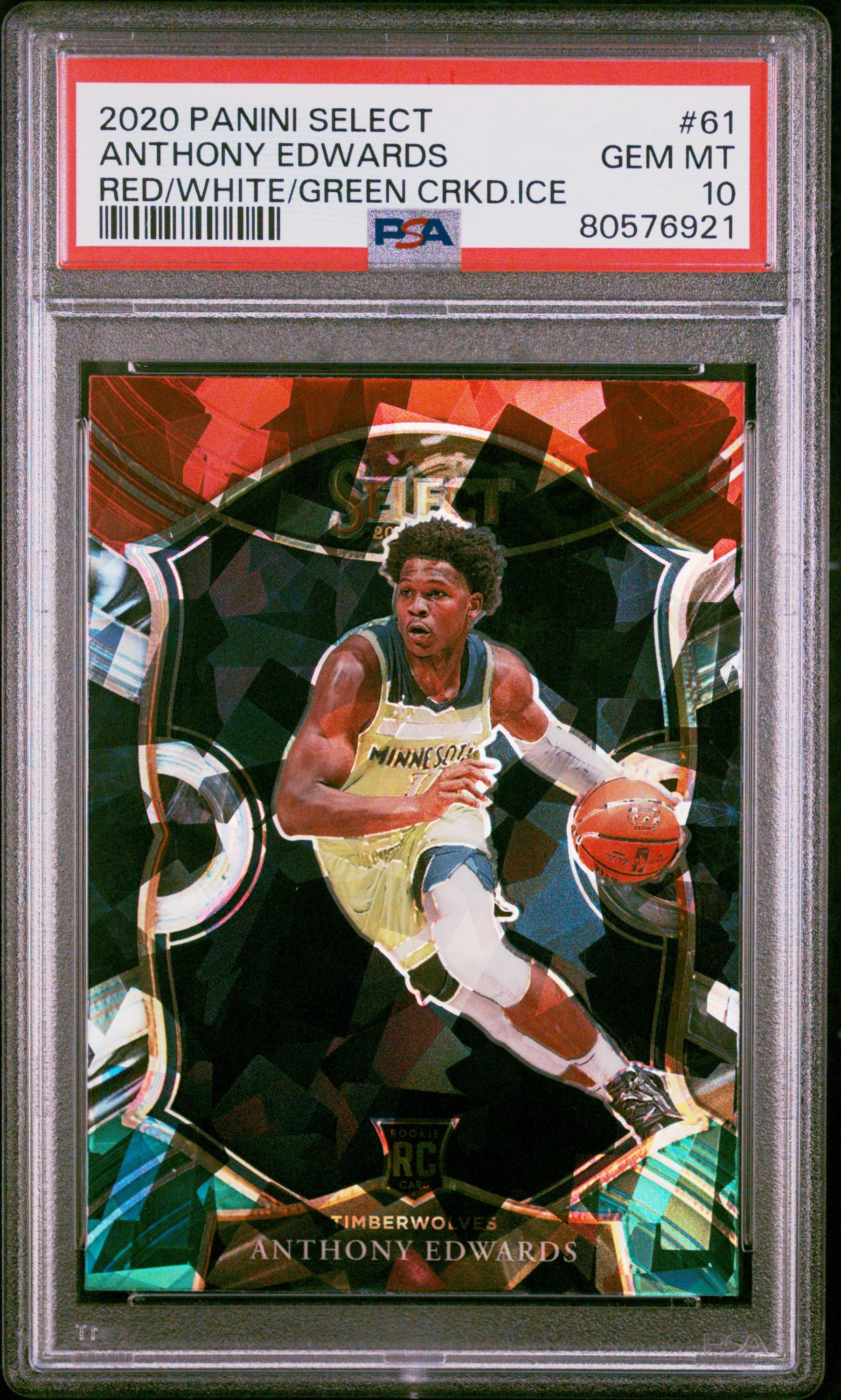 Anthony Edwards 2020 Panini Select #61 Red White Green Cracked Ice PSA 10 Gem Mint
