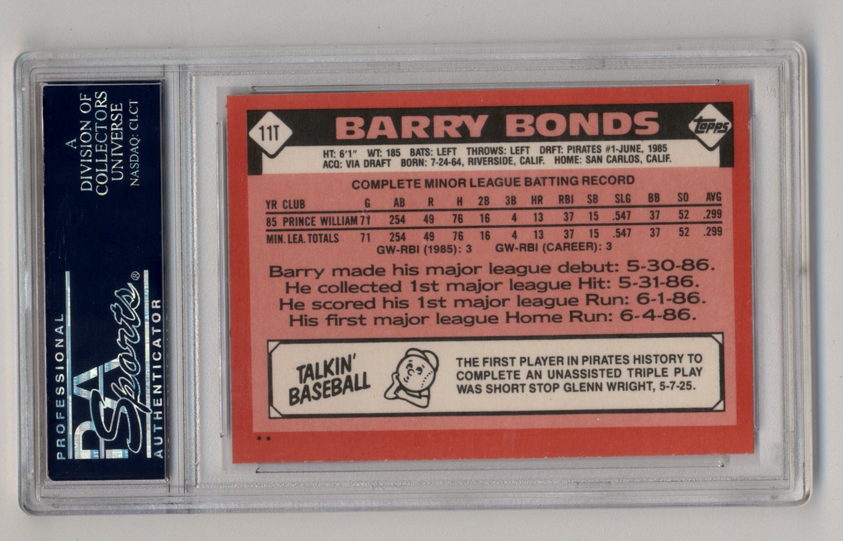 Barry Bonds 1986 Topps Traded #11T XRC PSA 10 Gem Mint