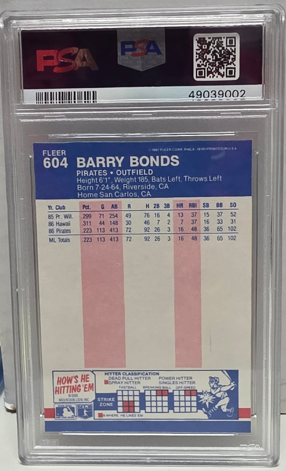 Barry Bonds 1987 Fleer Rookie #604 PSA 10 Gem Mint