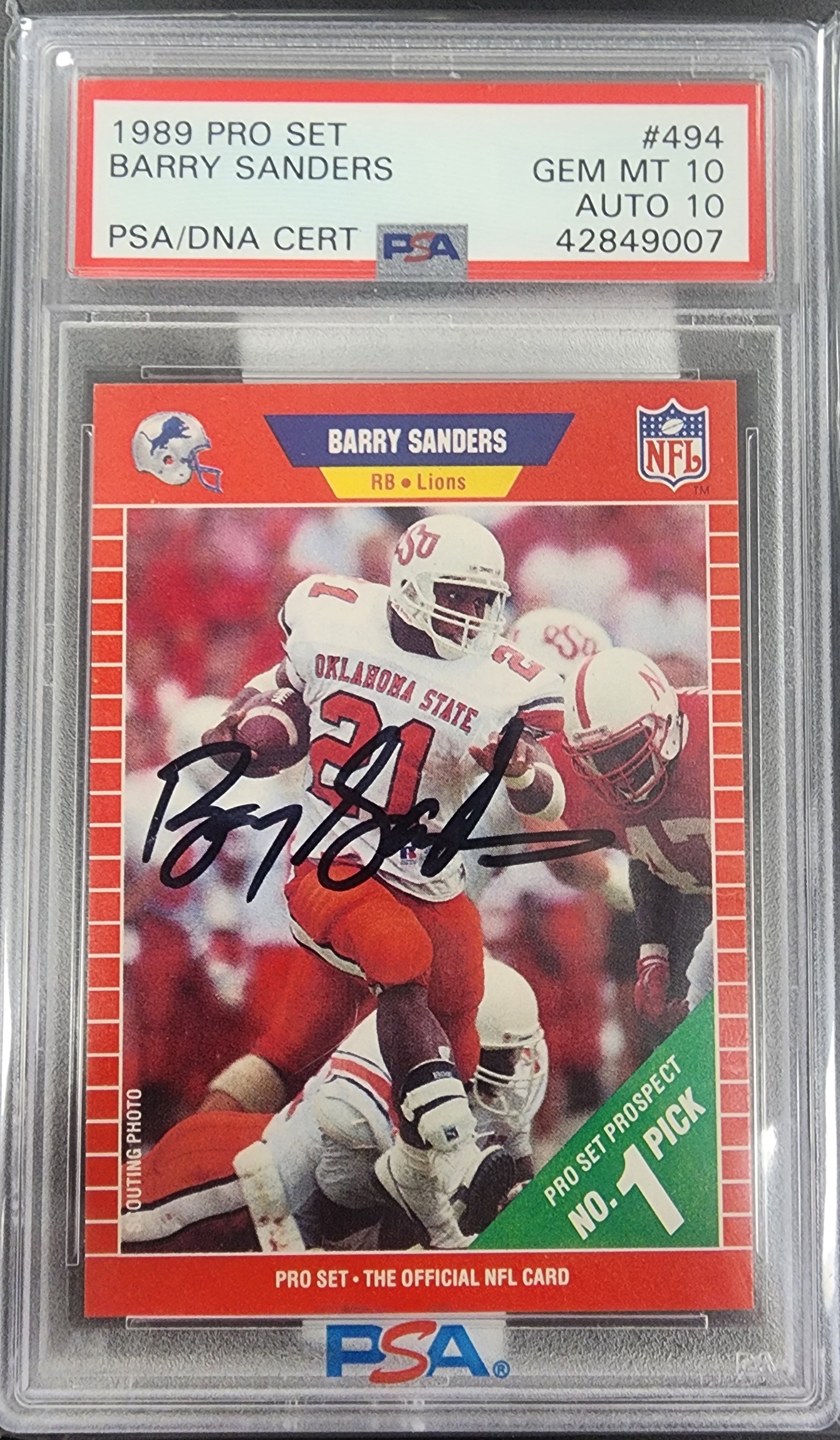 Barry Sanders 1989 Pro Set #494 PSA 10 Auto 10
