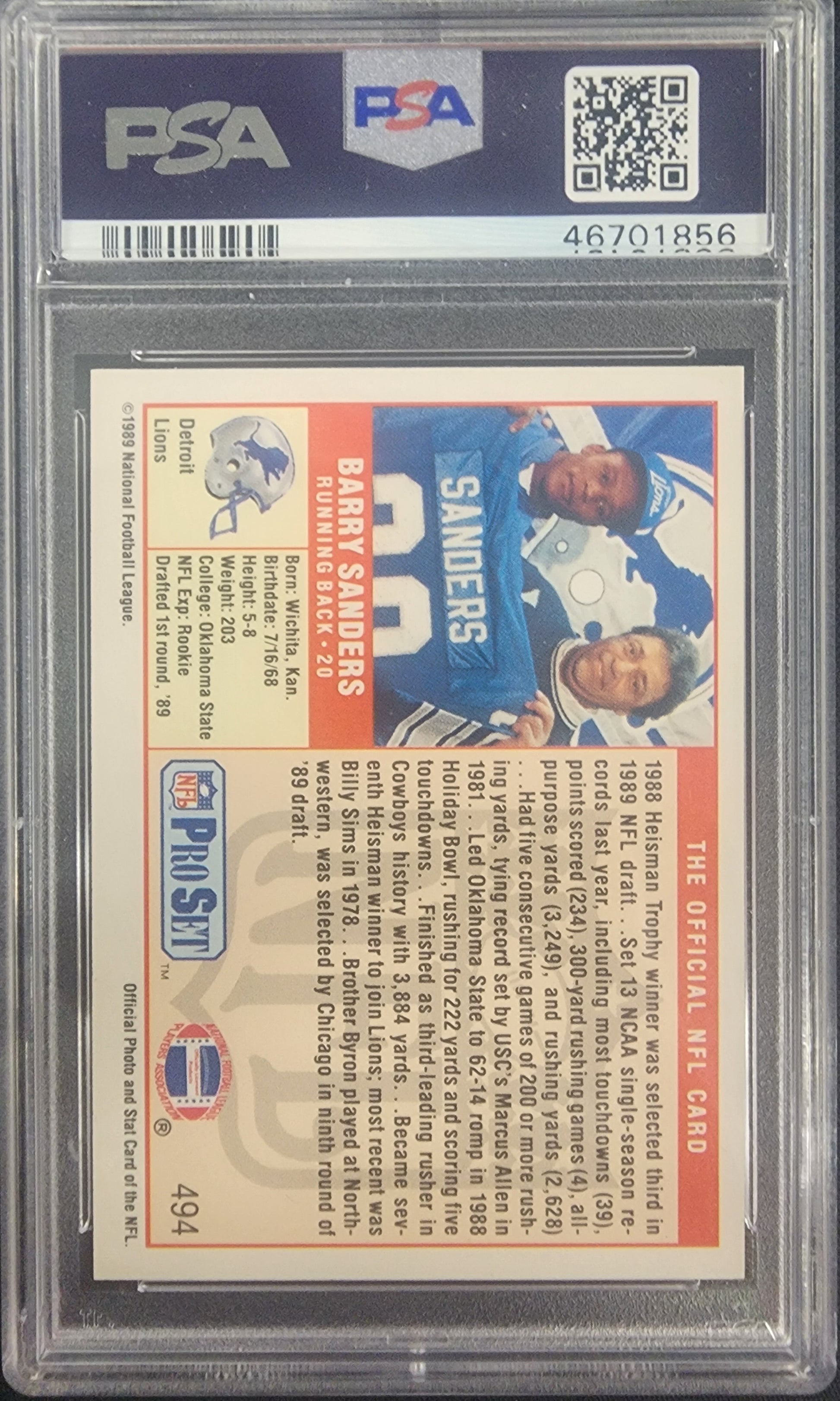 Barry Sanders 1989 Pro Set #494 RC PSA 10 Gem Mint 1856