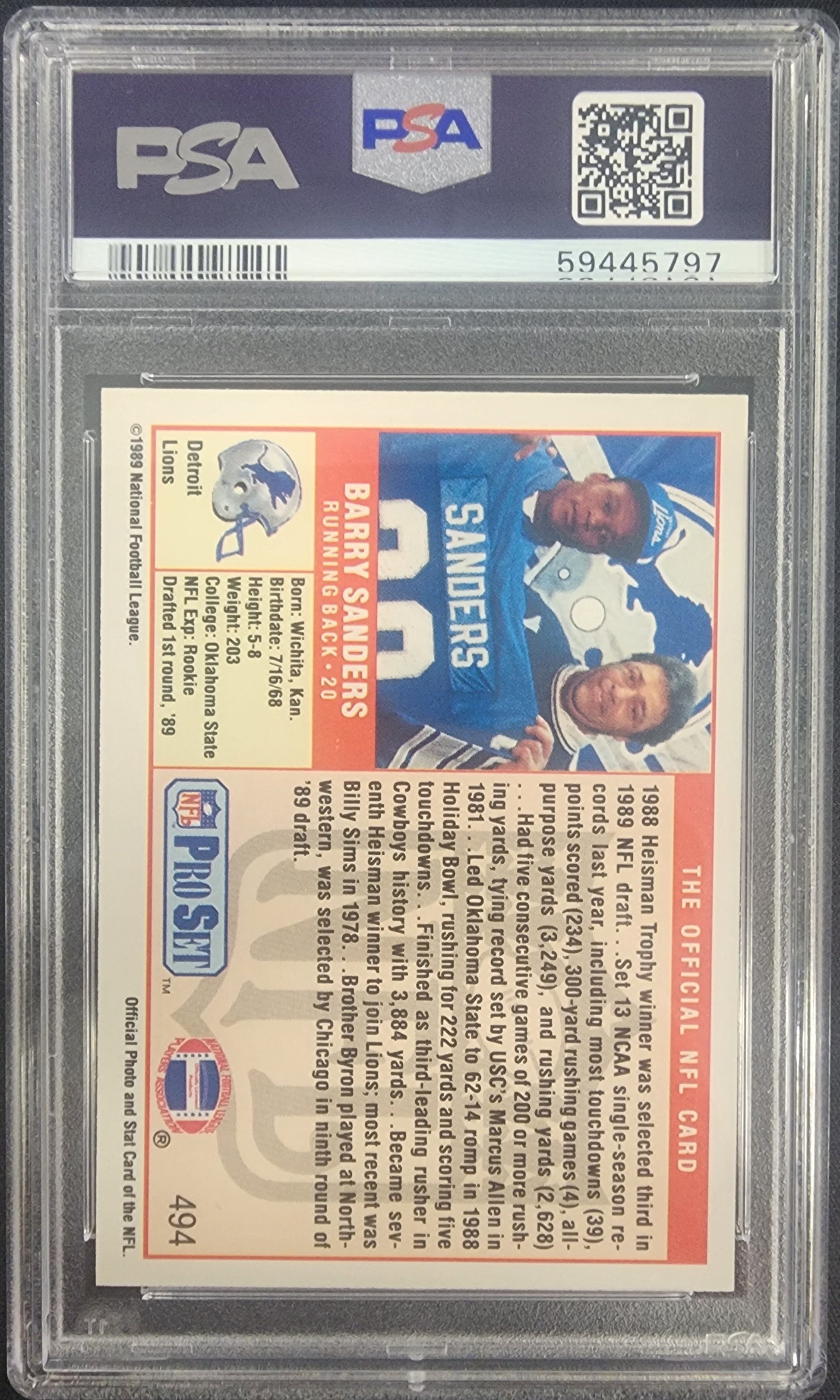 Barry Sanders 1989 Pro Set #494 RC PSA 10 Gem Mint 5797