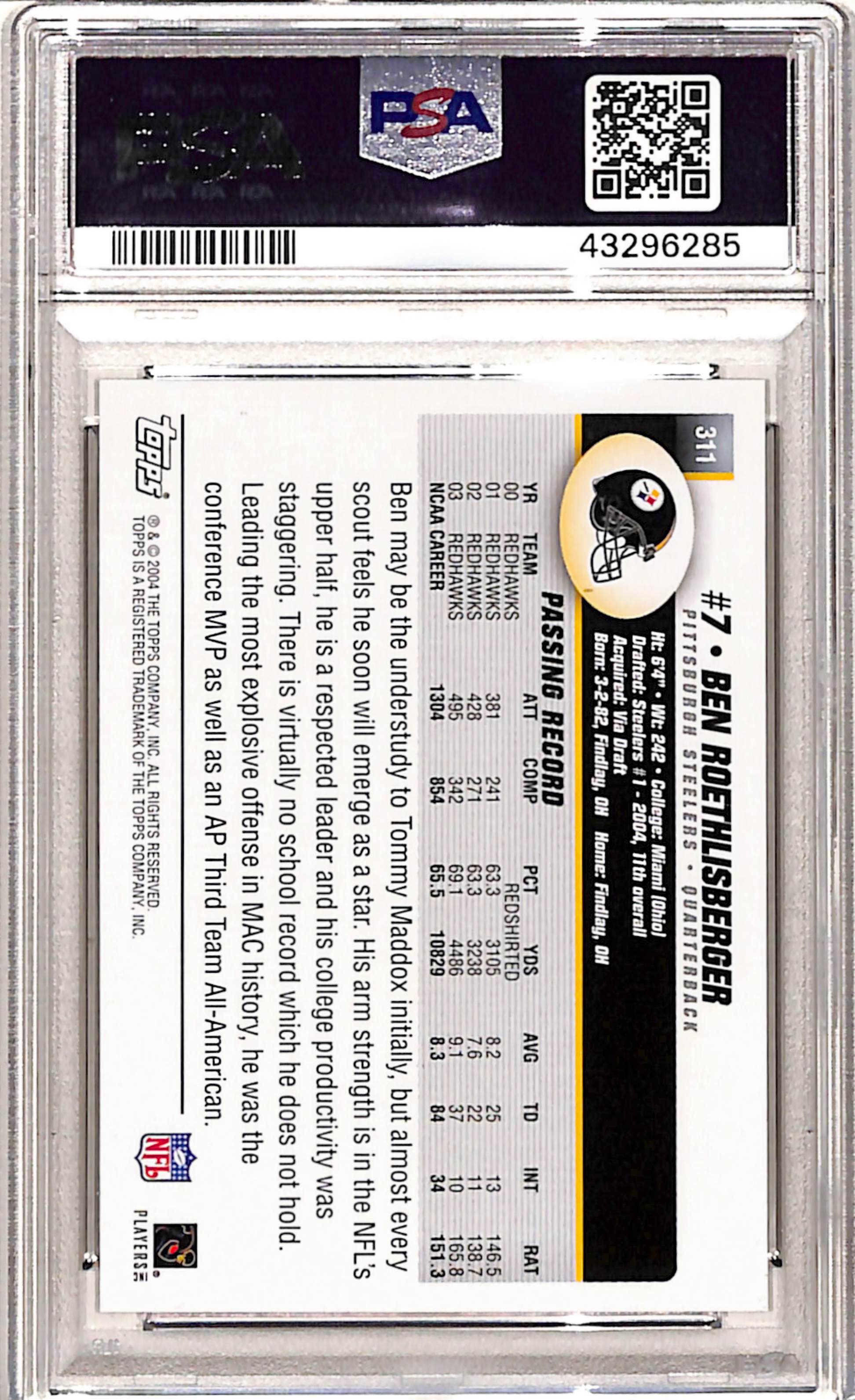 Ben Roethlisberger 2004 Topps Rookie #311 PSA 10 Gem Mint 6285