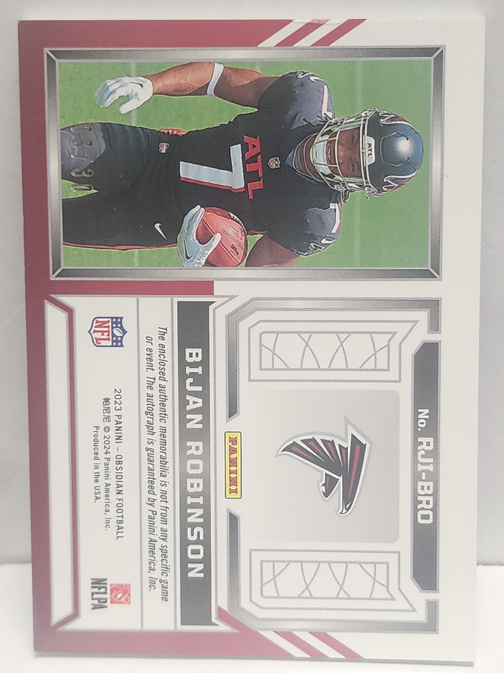 Bijan Robinson 2023 PAnini Obsidian Purple Flood Dual Patch Auto #3/30