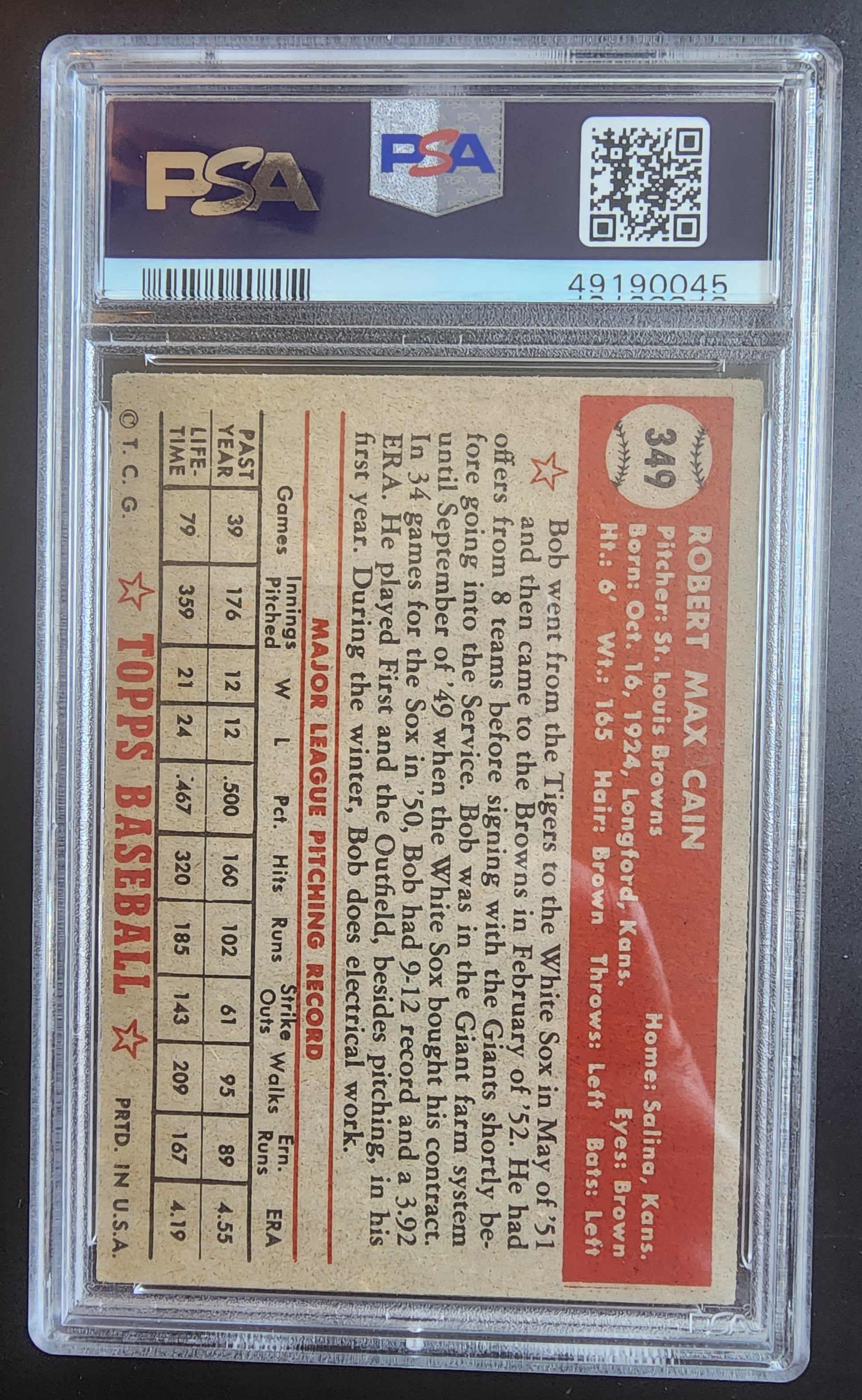 Bob Cain 1952 Topps #349 PSA 5.5