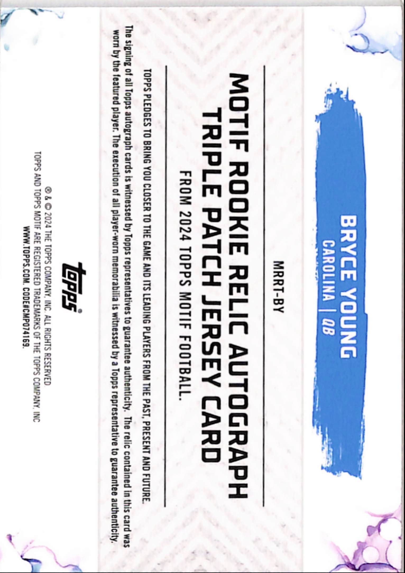 Bryce Young 2024 Topps Motif Triple Patch Rookie Auto #18/99