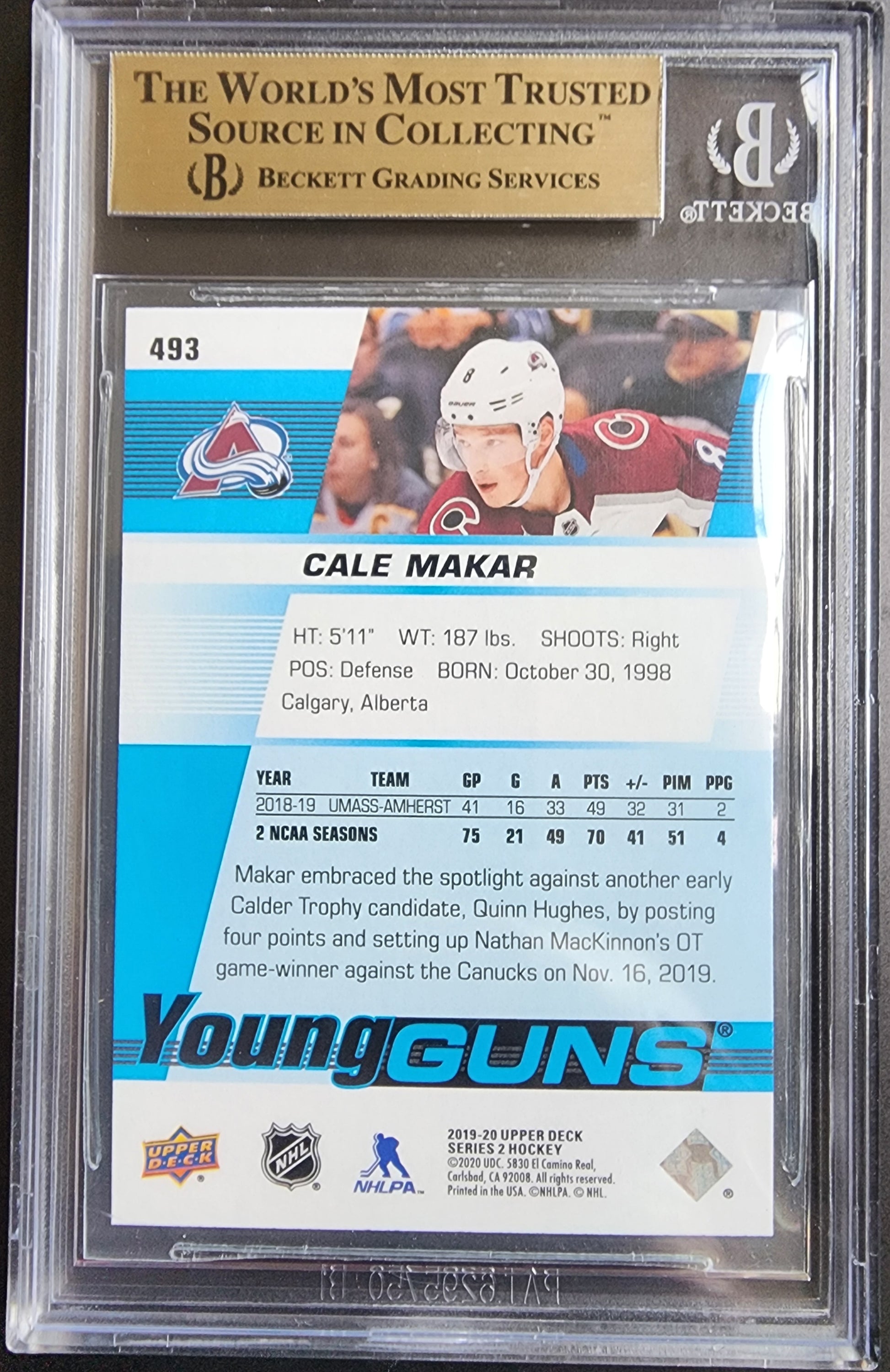 Cale Makar 2019 Upper Deck #493 BGS 9.5 Gem Mint
