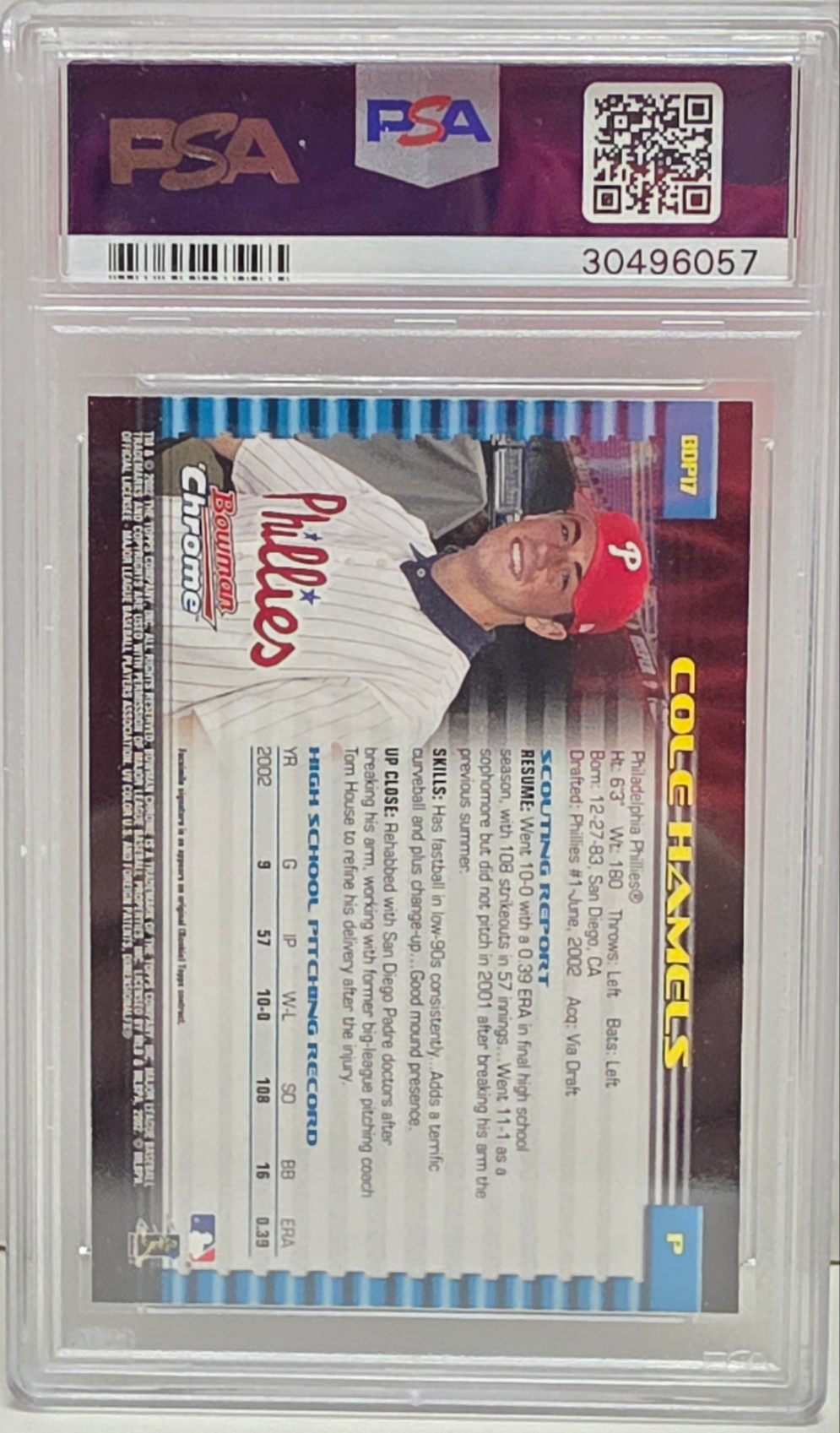 Cole Hamels 2002 Bowman Chrome Draft Rookie #17 PSA 10 Gem Mint