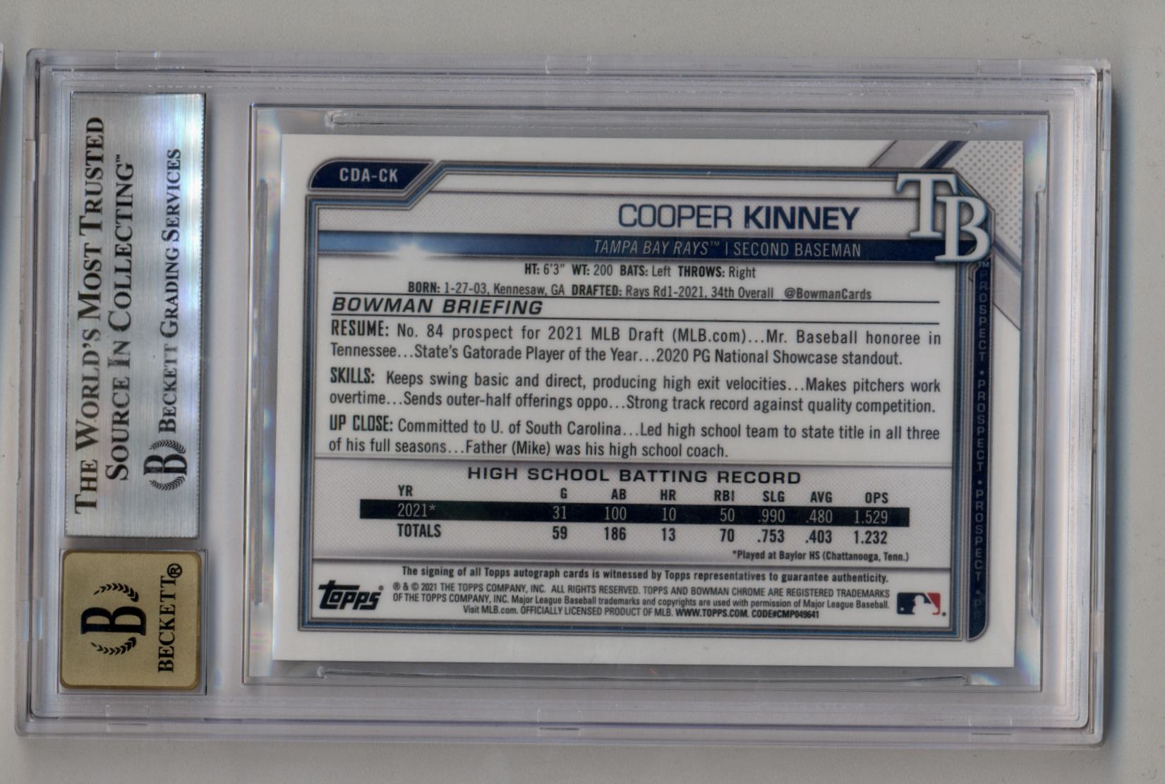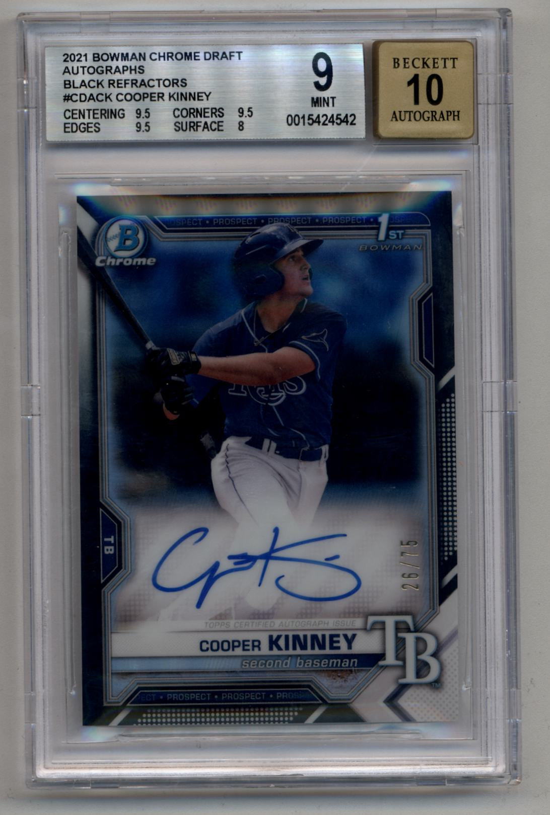 Cooper Kinney 2021 Bowman Chrome Draft Prospects Black Refractor Auto 26/75 BGS 9 Mint Auto 10