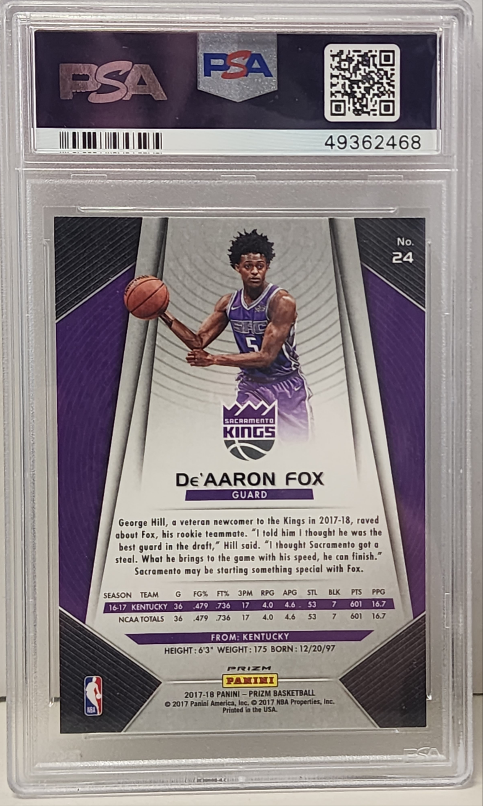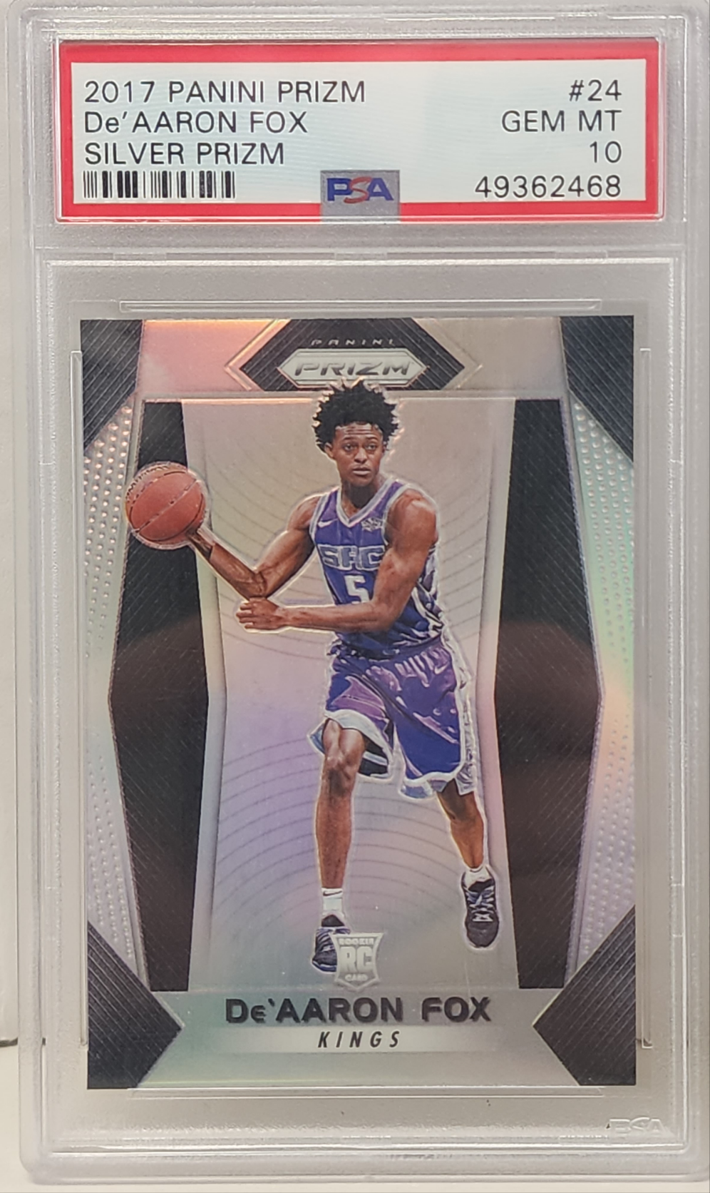 De'Aaron Fox 2017 Panini Prizm RC #24 Silver Prizm PSA 10 Gem Mint