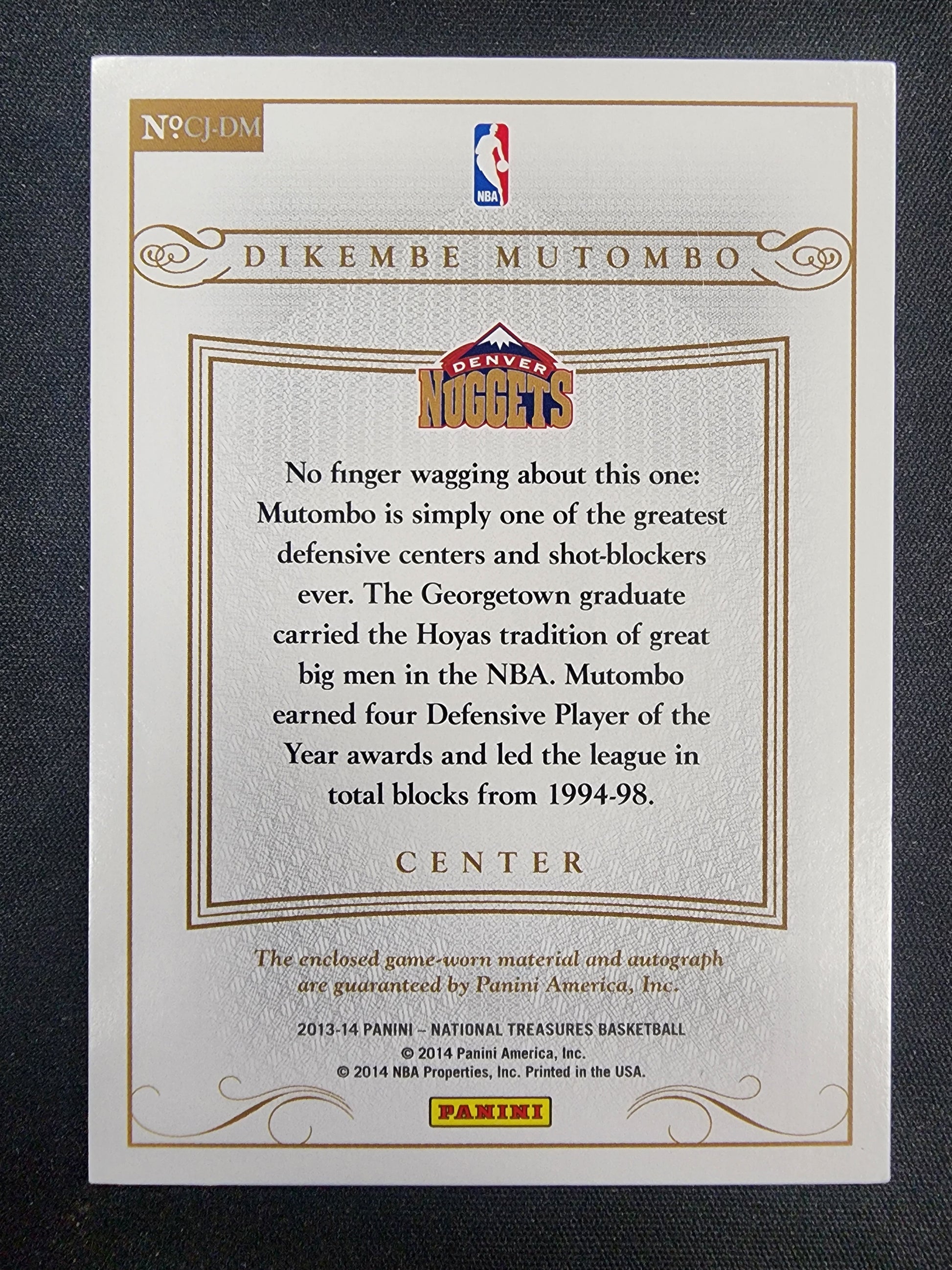 Dikembe Mutumbo 2013 PAnini NAtional Treasures Colossal Jersey Auto #60/60