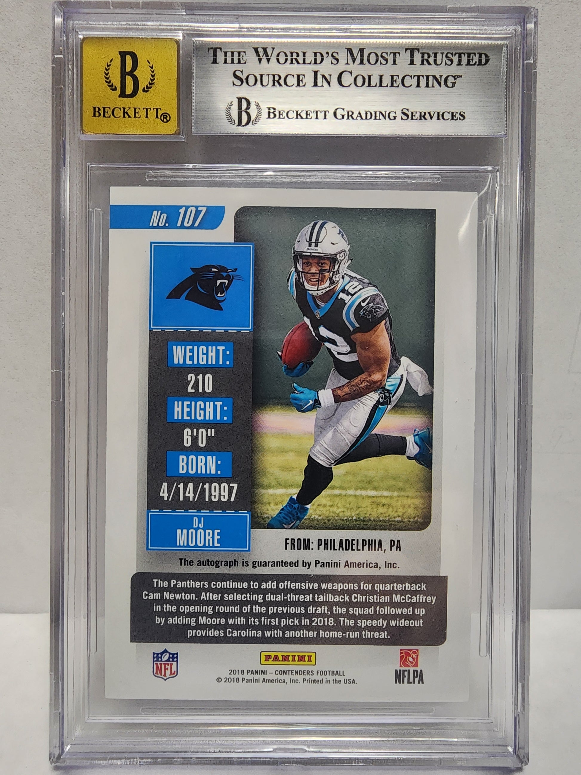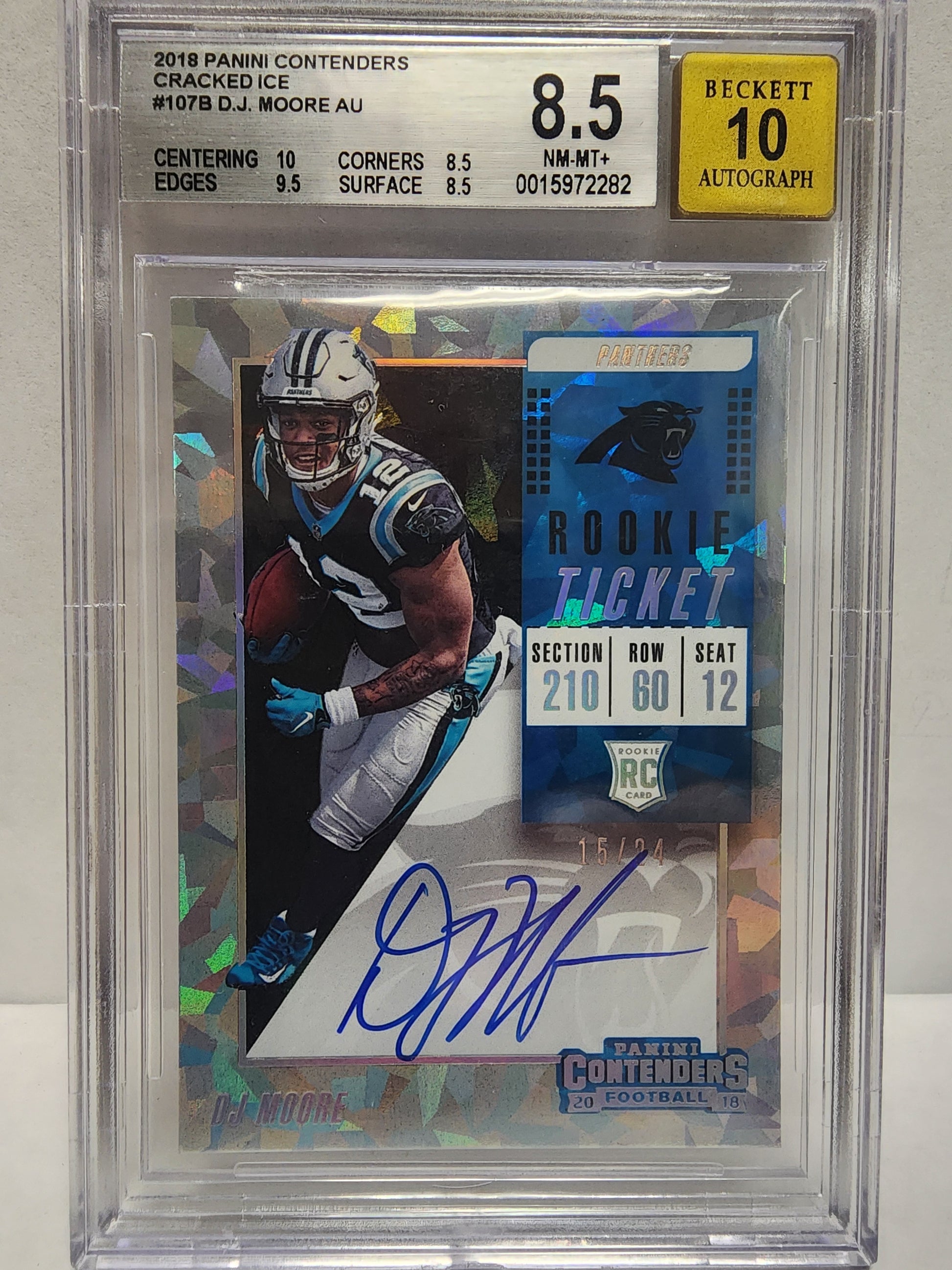 D.J. Moore 2018 Panini Contenders Cracked Ice Auto #15/24 BGS 8.5 Auto 10