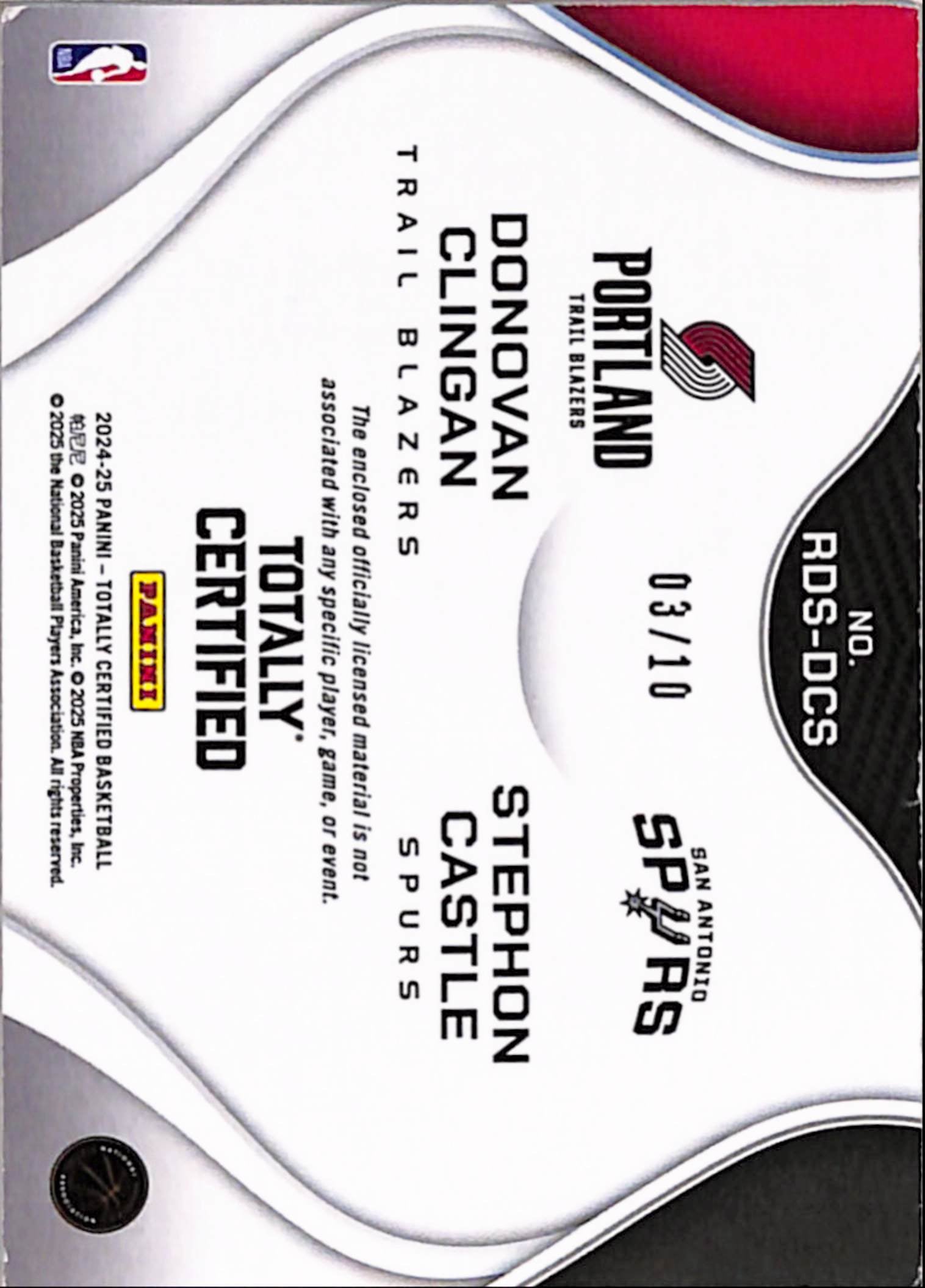 Donovan Clingan + Stephon Castle 2024 Panini Totally Certified Gold Dual Patch #3/10