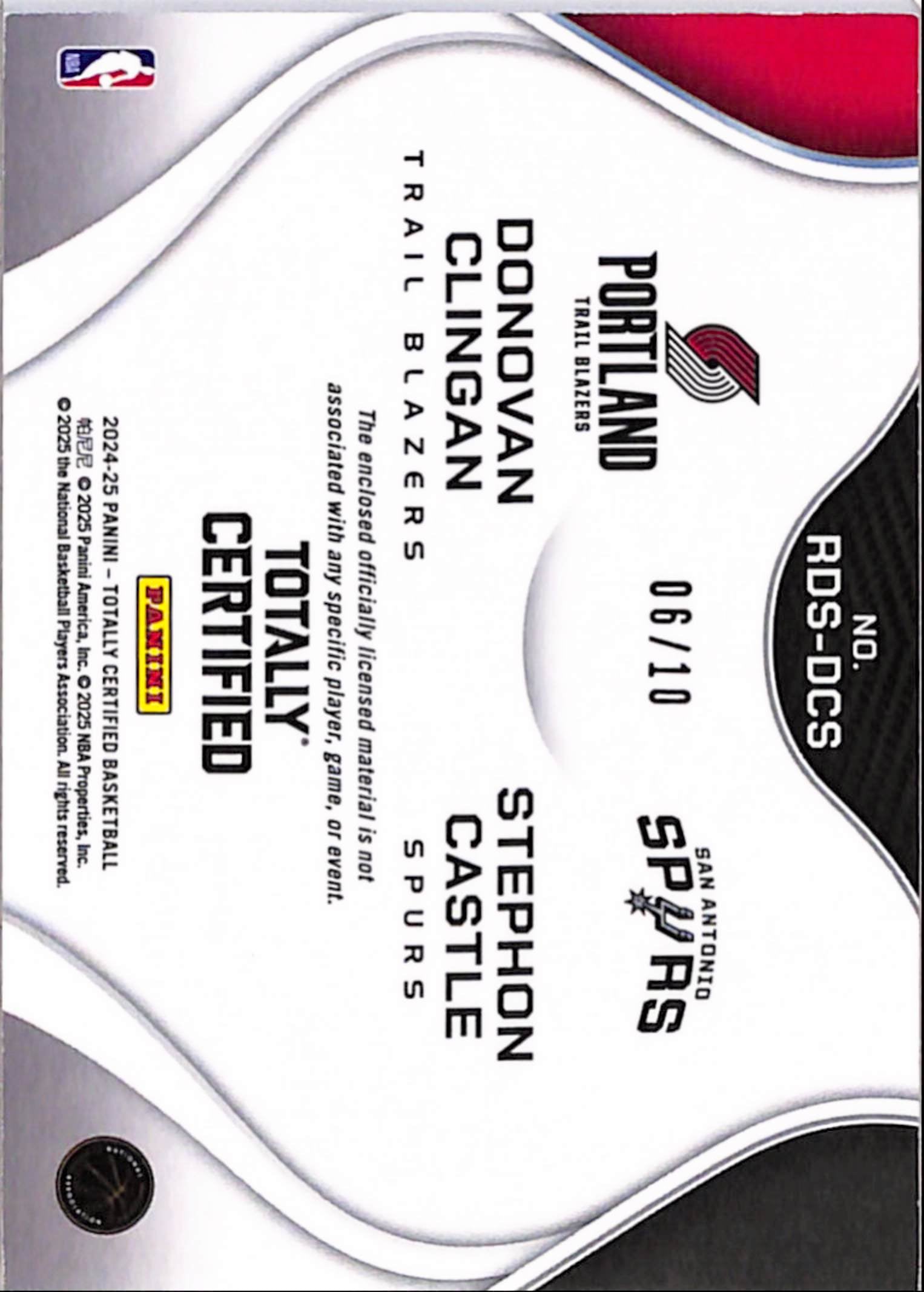 Donovan Clingan + Stephon Castle 2024 Panini Totally Certified Gold Dual Patch #6/10