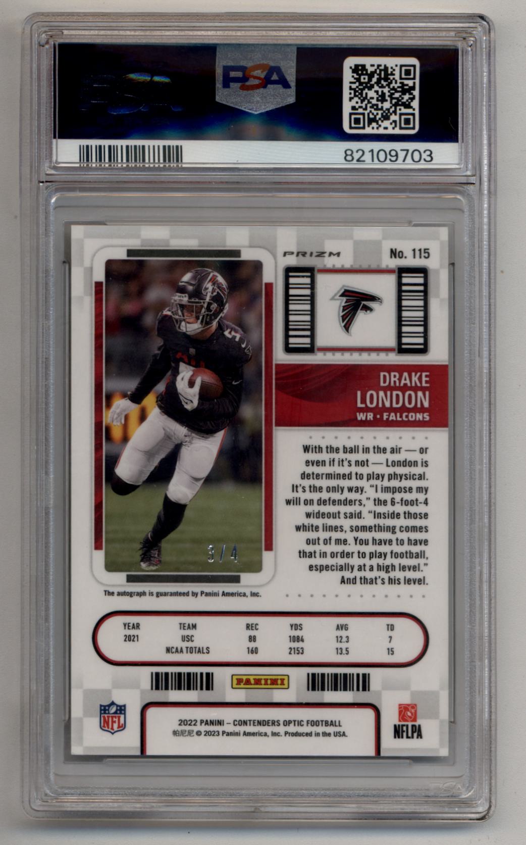 Drake London 2022 Contenders Optic Auto Neon Marble Auto 3/4 PSA 10 Gem Mint