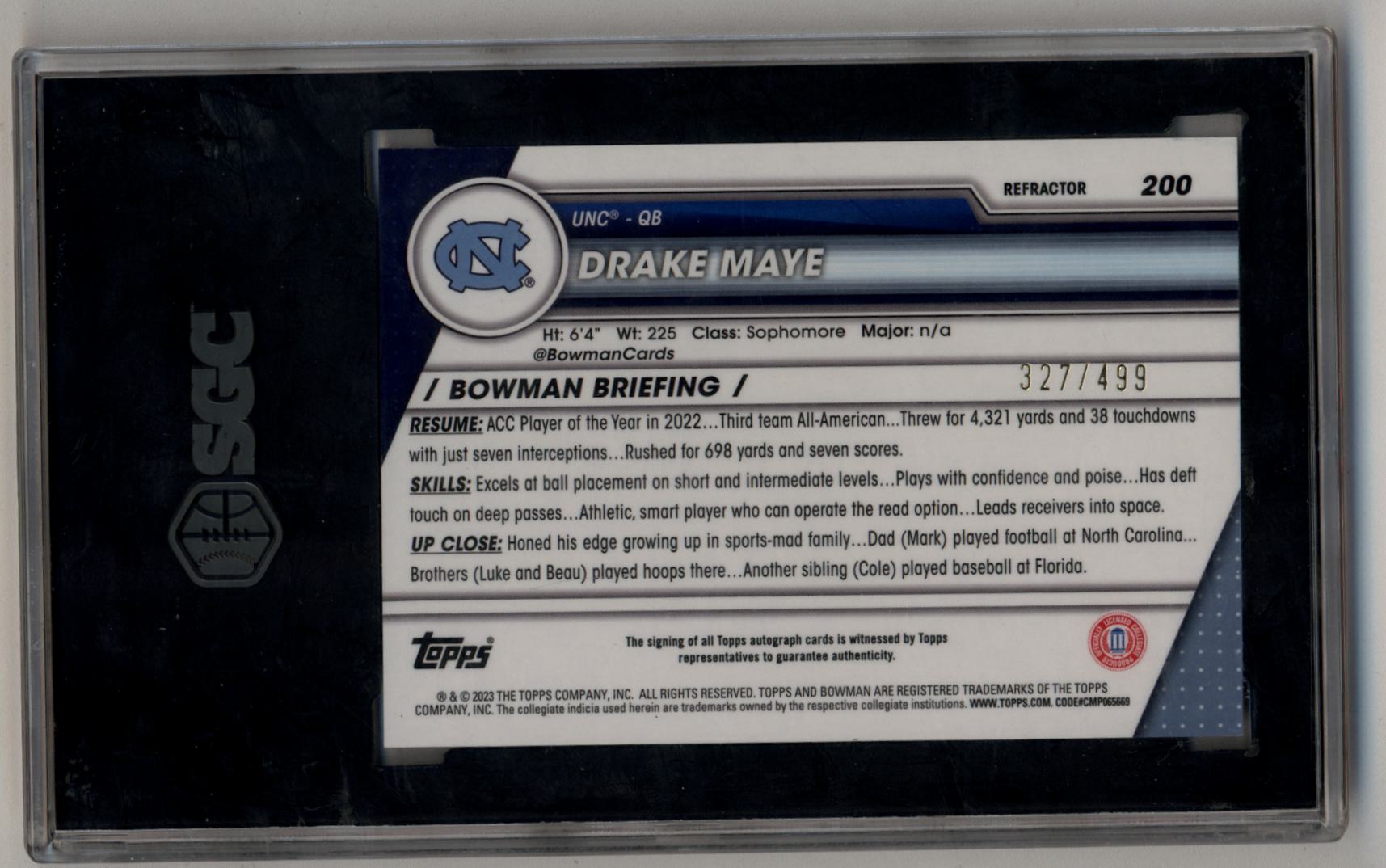 Drake Maye 2023 Bowman Chrome University Refractor 327/499 Auto SGC 10 Gem Mint