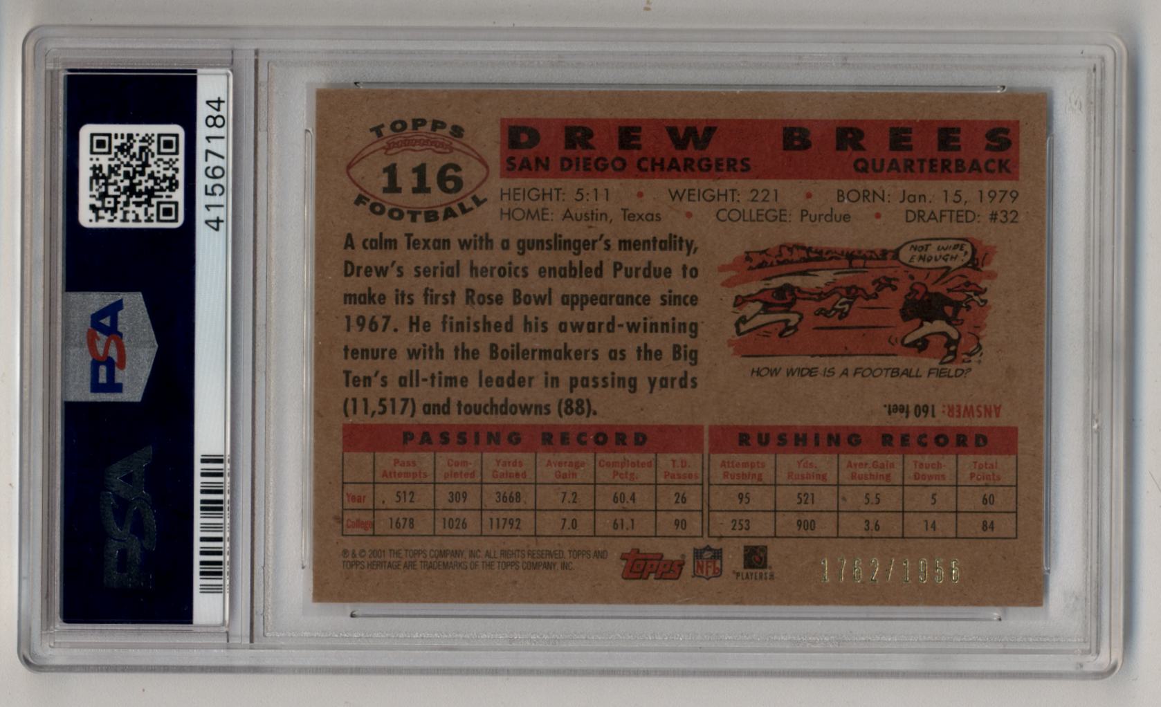 Drew Brees 2001 Topps Heritage #116 1762/1956 PSA 10 Gem Mint