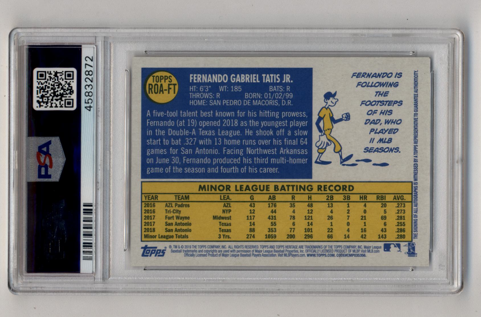 Fernando Tatis Jr 2019 Topps Heritage Real One Auto PSA 10 Gem Mint