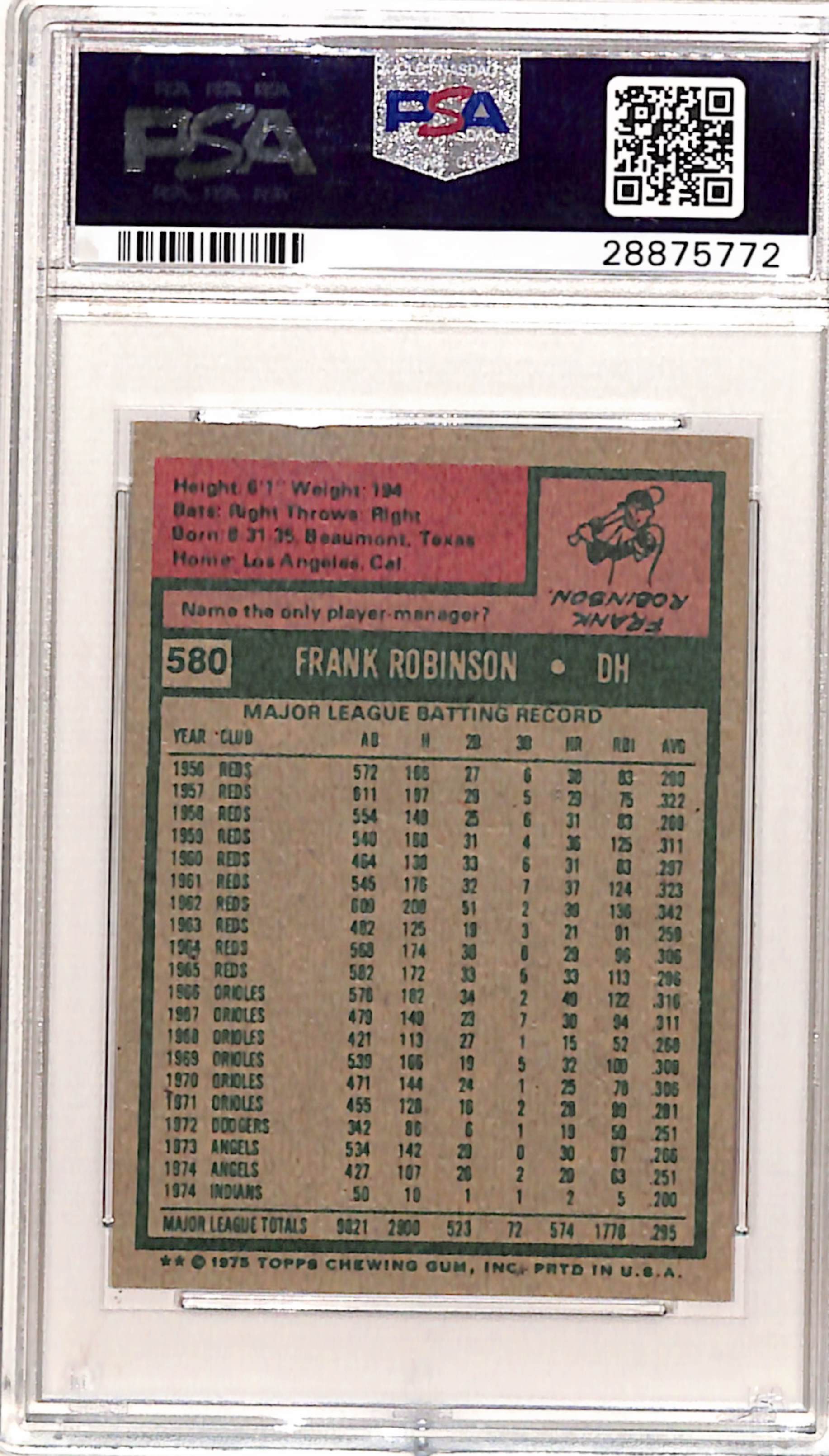 Frank Robinson 1975 Topps Mini #580 PSA 8 Nm-Mint