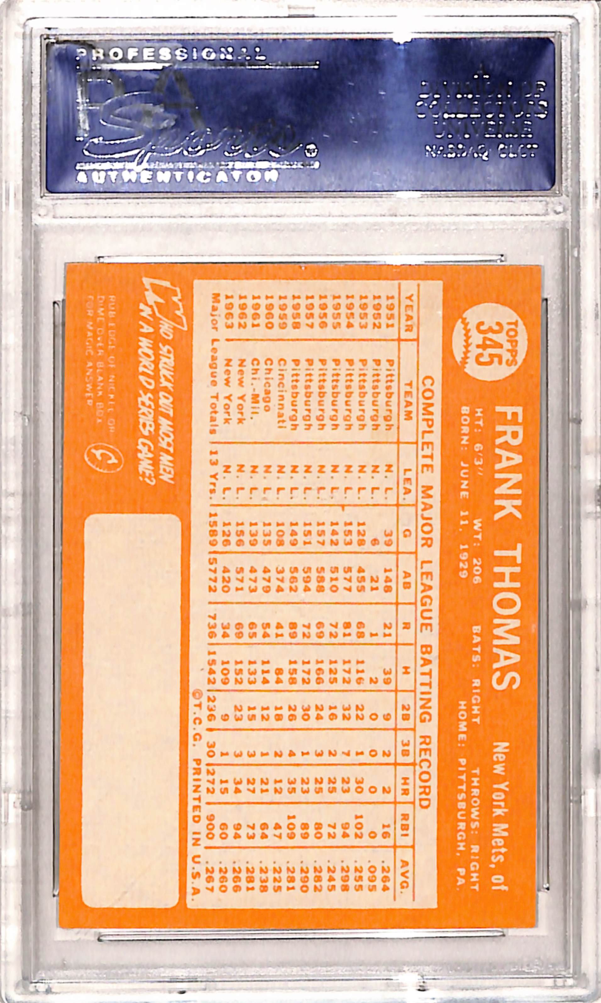 Frank Thomas 1964 Topps #345 PSA 10 Gem Mint