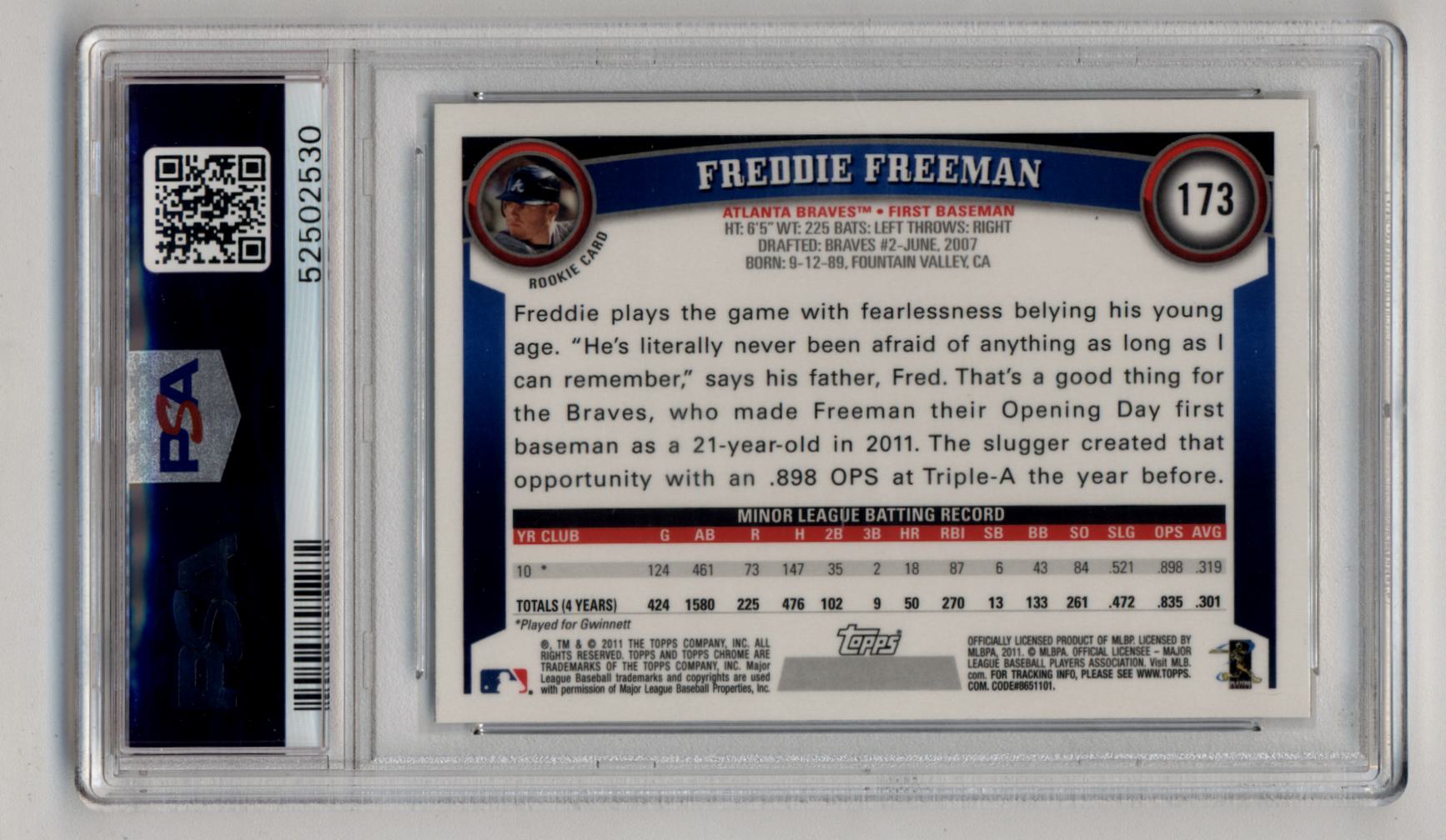 Freddie Freeman 2011 Topps Chrome Rookie #173 PSA 10 Gem Mint 2530