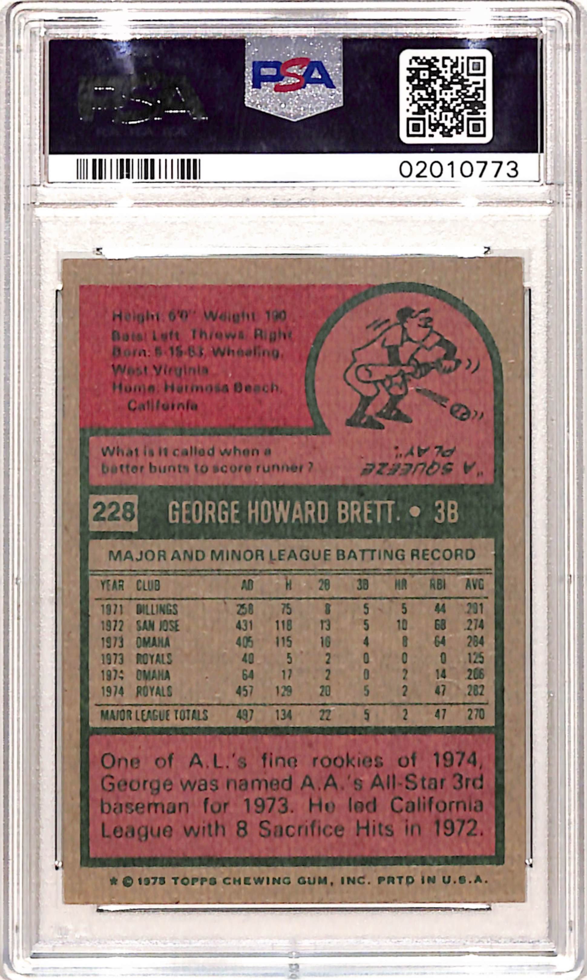George Brett 1975 Topps Rookie #228 PSA 8 Nm-Mint