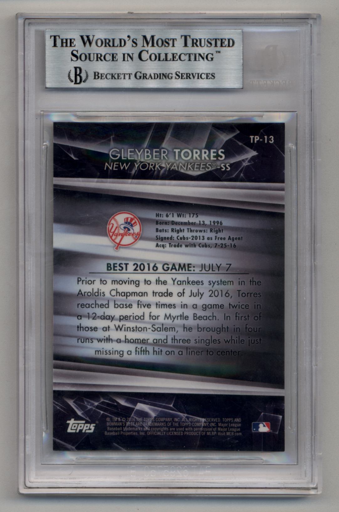Gleyber Torres 2016 Bowman's Best Top Prospects #TP13 Superfractor 1/1 BGS 9