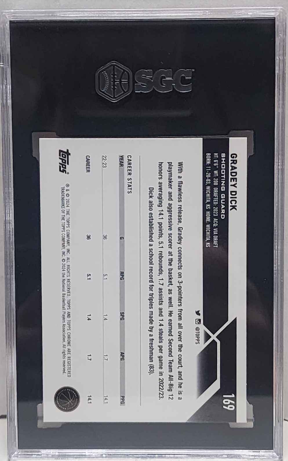 Gradey Dick 2023 Topps Chrome Orange Refractor #4/25 SGC 10 Gem Mint