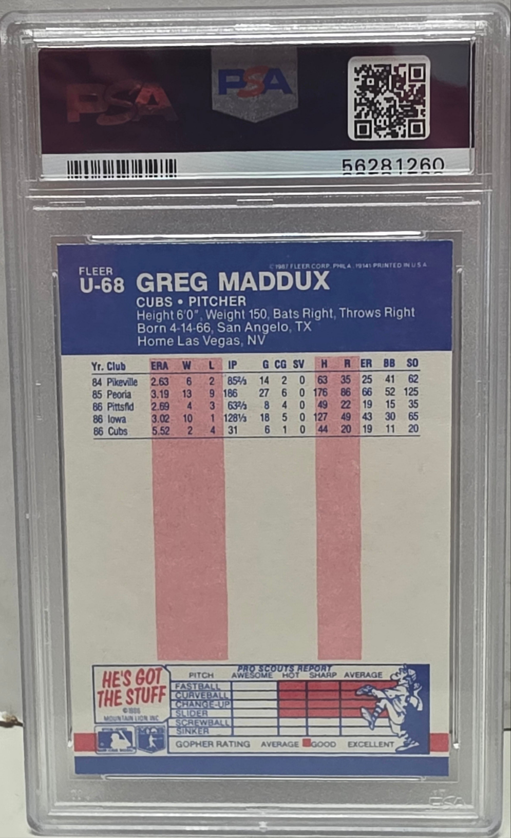 Greg Maddux 1987 Fleer Update Rookie #U68 PSA 10 Gem Mint