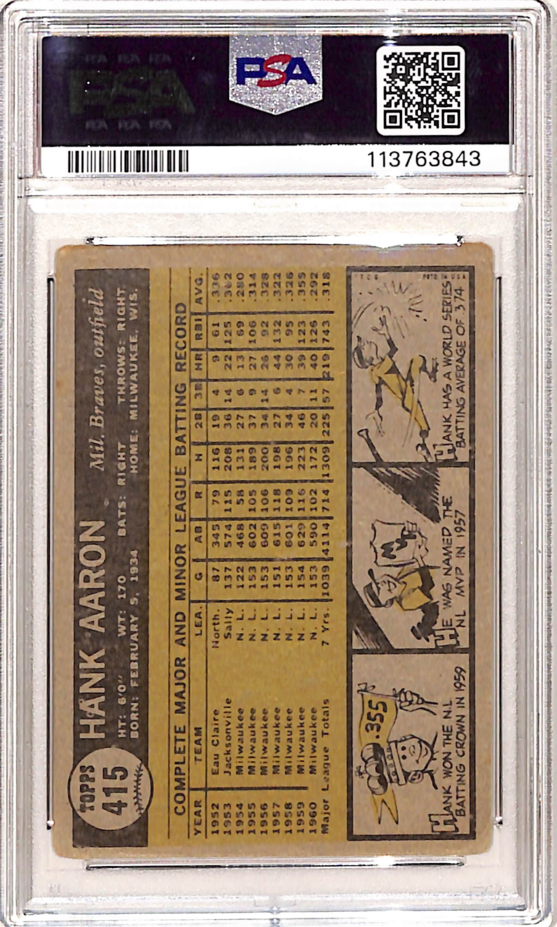 Hank Aaron 1961 Topps #415 PSA 2 Good