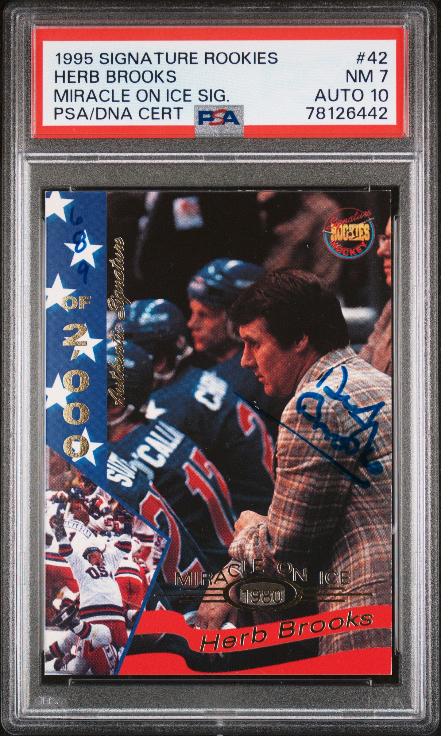 Herb Brooks 1995 Signature Rookies Miracle Auto PSA 7 Auto 10