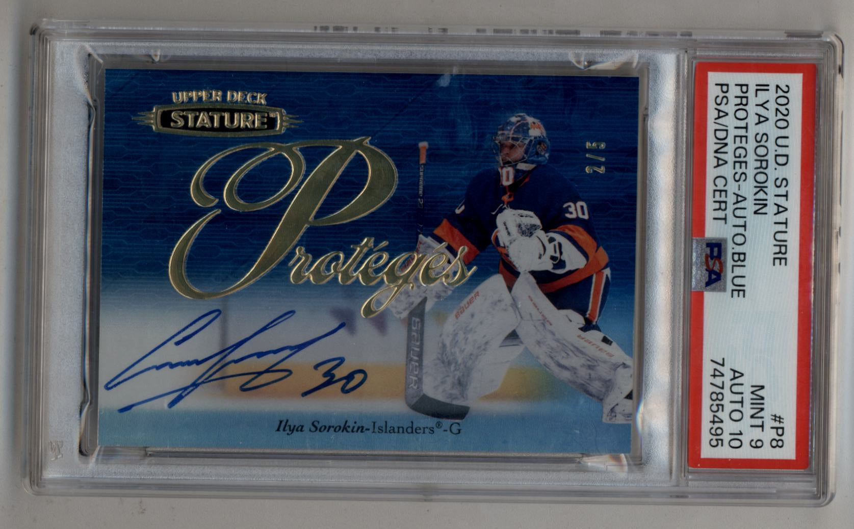 Ilya Sorokin 2020-21 Stature Proteges Auto Blue 2/5 PSA 9 Mint Auto 10