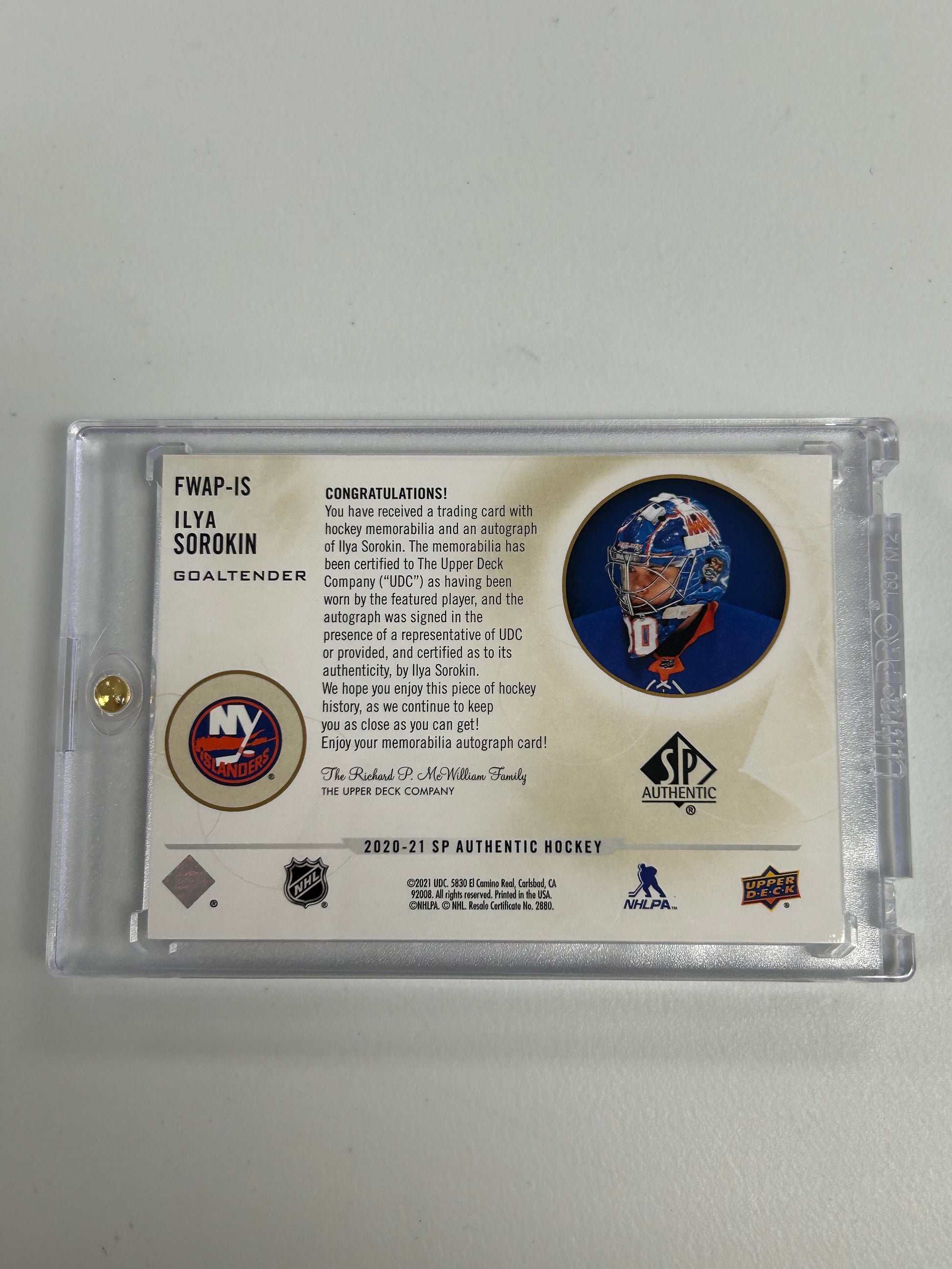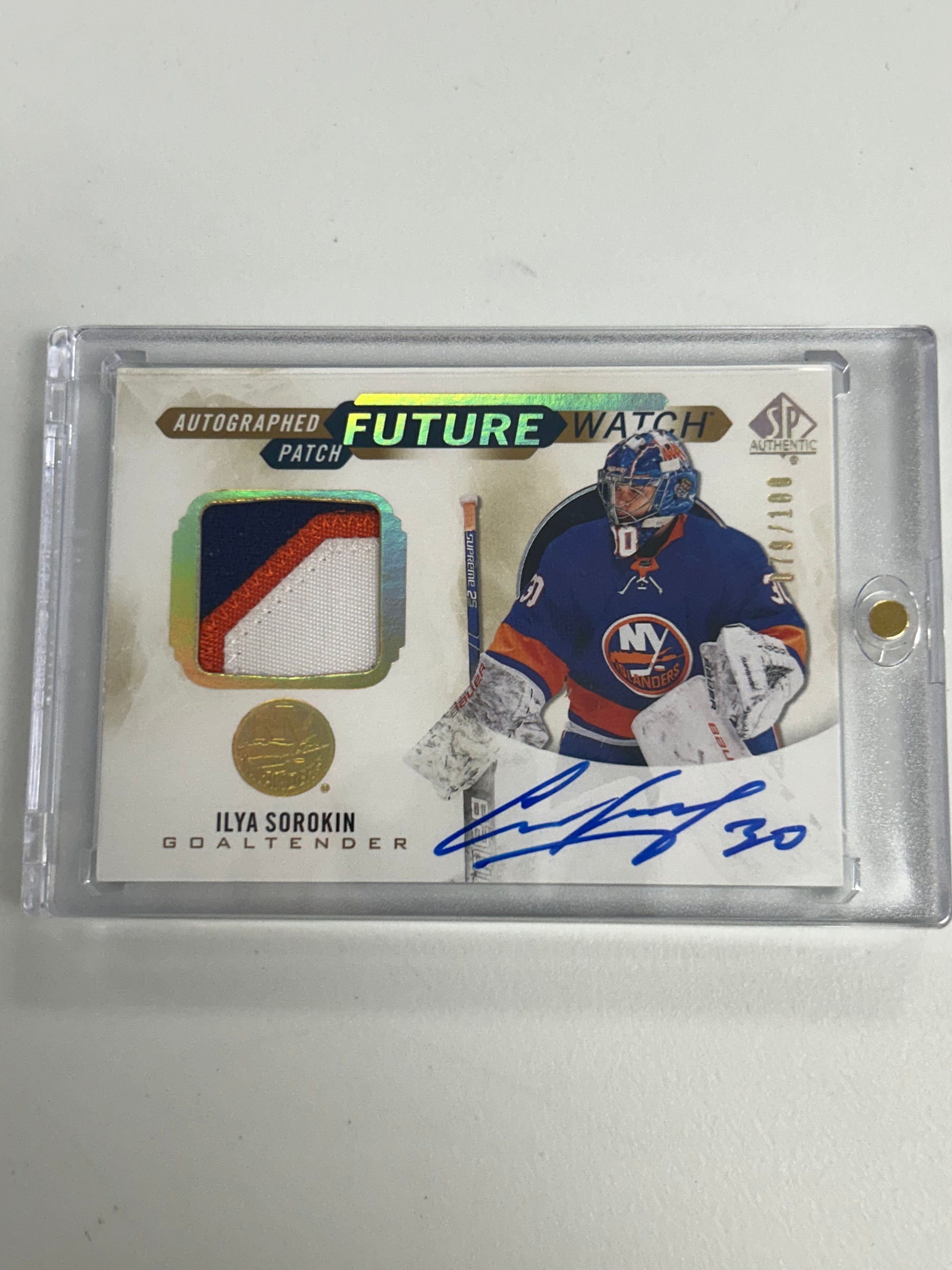 Ilya Sorokin 2020 Upper Deck SP Authentic Future Watch Patch Auto #79/100