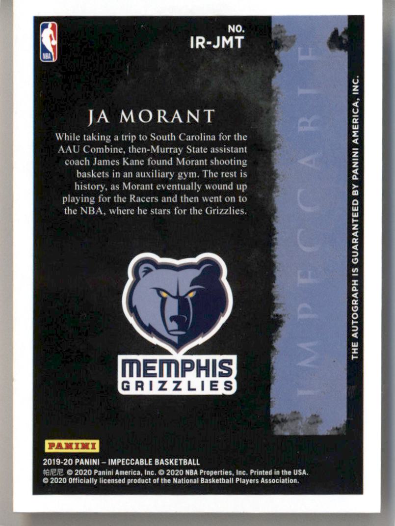 Ja Morant 2019-20 Impeccable Rookie Signatures #IR-JMT 22/25